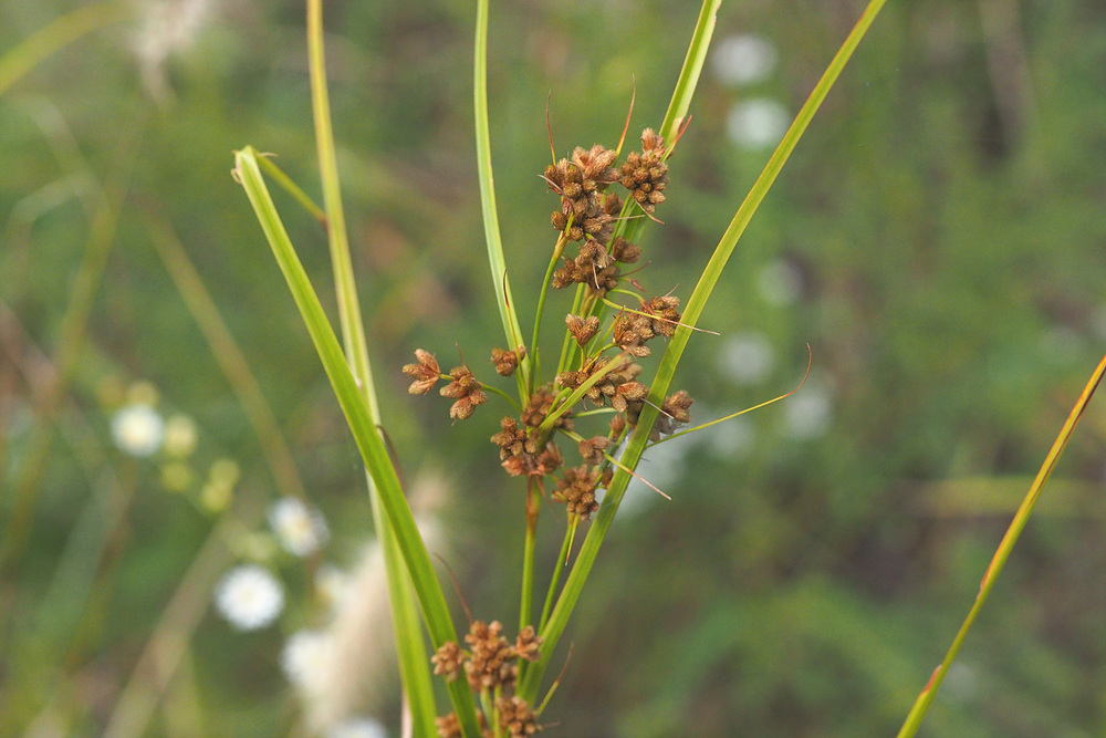 솔방울고랭이 ; 소수 5~10개, 열매가 긴 타원형이고 이삭이 꼿꼿이 선다. 개화기 9~10월, 산지 습지에서 자람