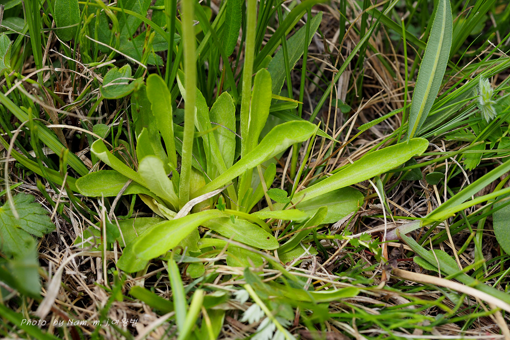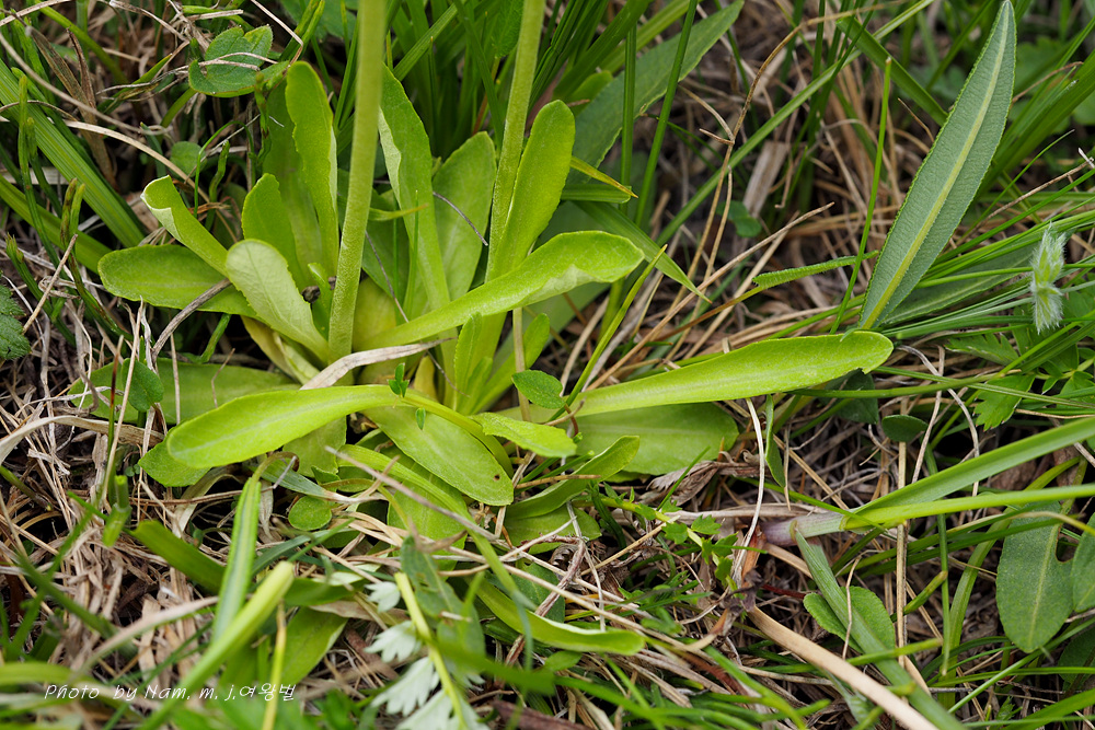 이 녀석 잎에 굽은 얕은 톱니가 있고 잎자루가 뚜렷하지 않은 긴주걱형이다.