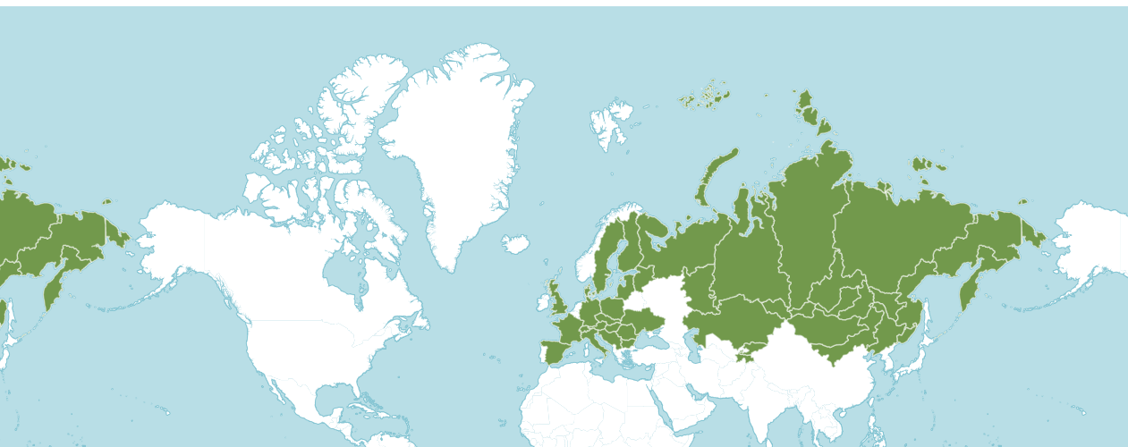 원산지는 아북극 및 중앙 유라시아에 넓게 분포한다.