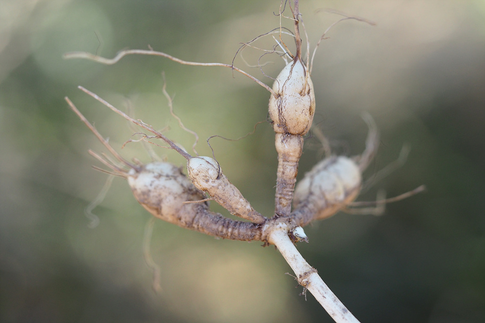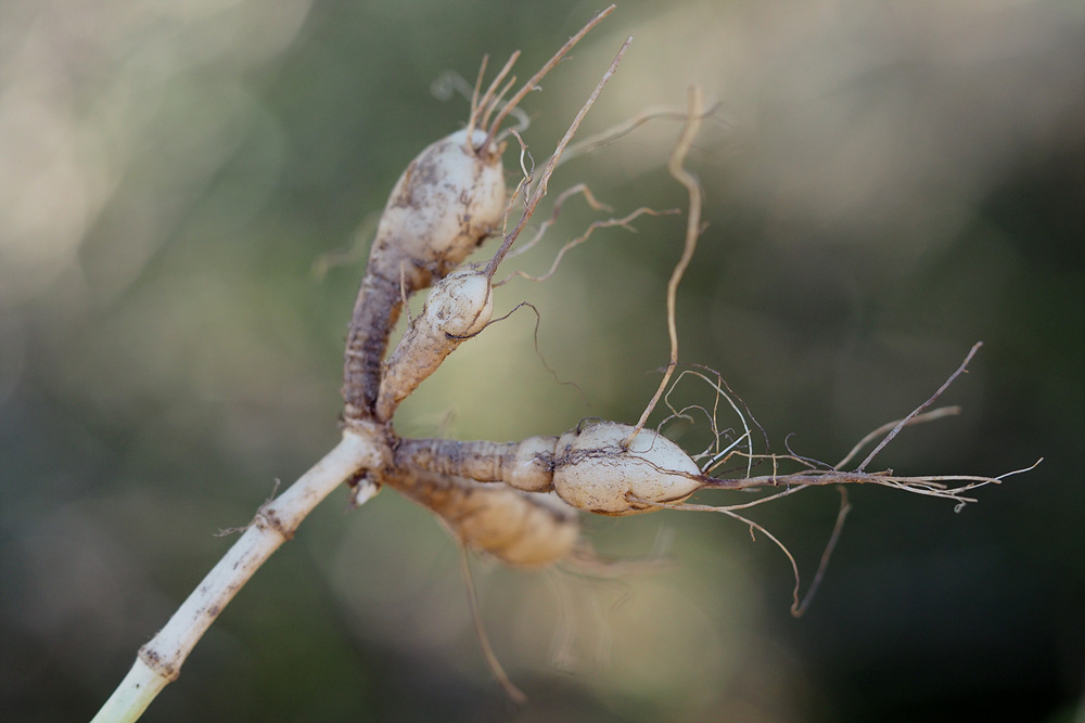 뿌리 확인을 위하여 한 포기를 캐서 촬영 후 다시 묻어 주었다.