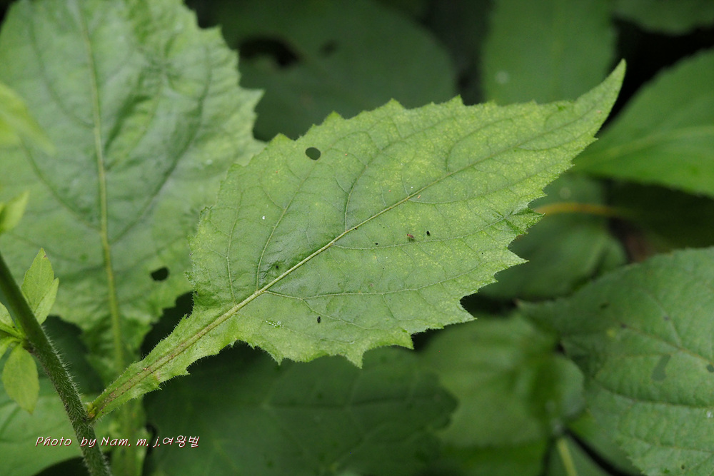 내륙의 고산에 자라는 녀석으로 잎자루에 날개가 있고 잎의 기부가 급하게 좁아지며 꽃의 크기가 좀담배풀 보다 작다.