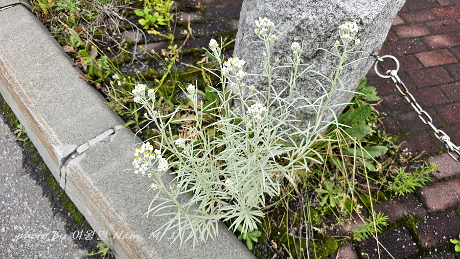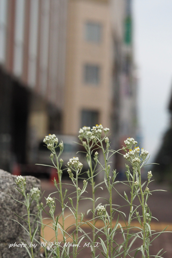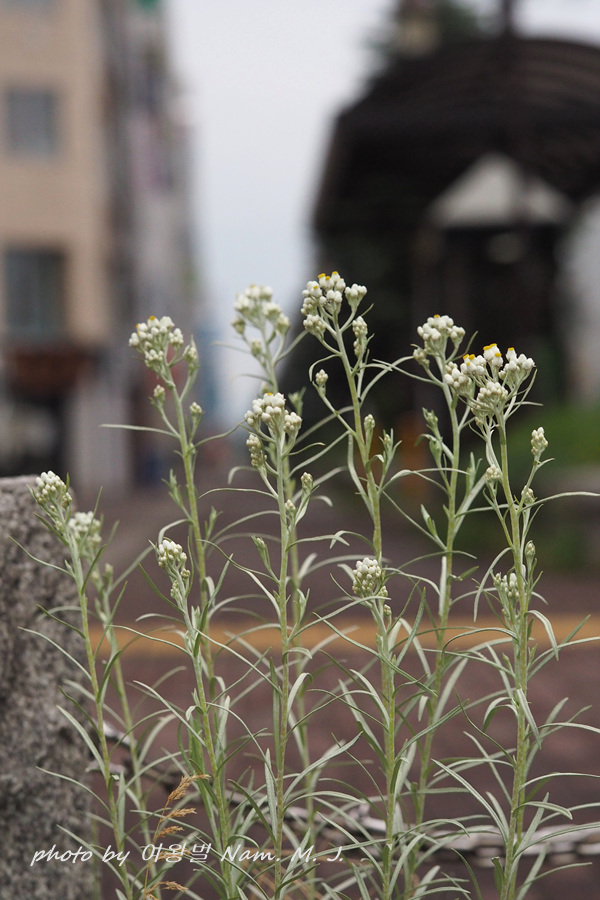 건물 바로 앞 도로변에 난데 없이 다북떡쑥을 닮은 녀석이 서 있었다. 두화와 총포 모습, 전초의 뽀안 털이 다북떡쑥과 많이 비슷하긴 했지만 생소한 모습이었다