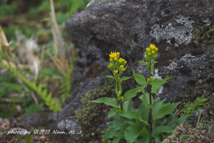 일본 고산도감에 실린 Solidago virgaurea subsp. leiocarpa 와 거의 흡사한데,