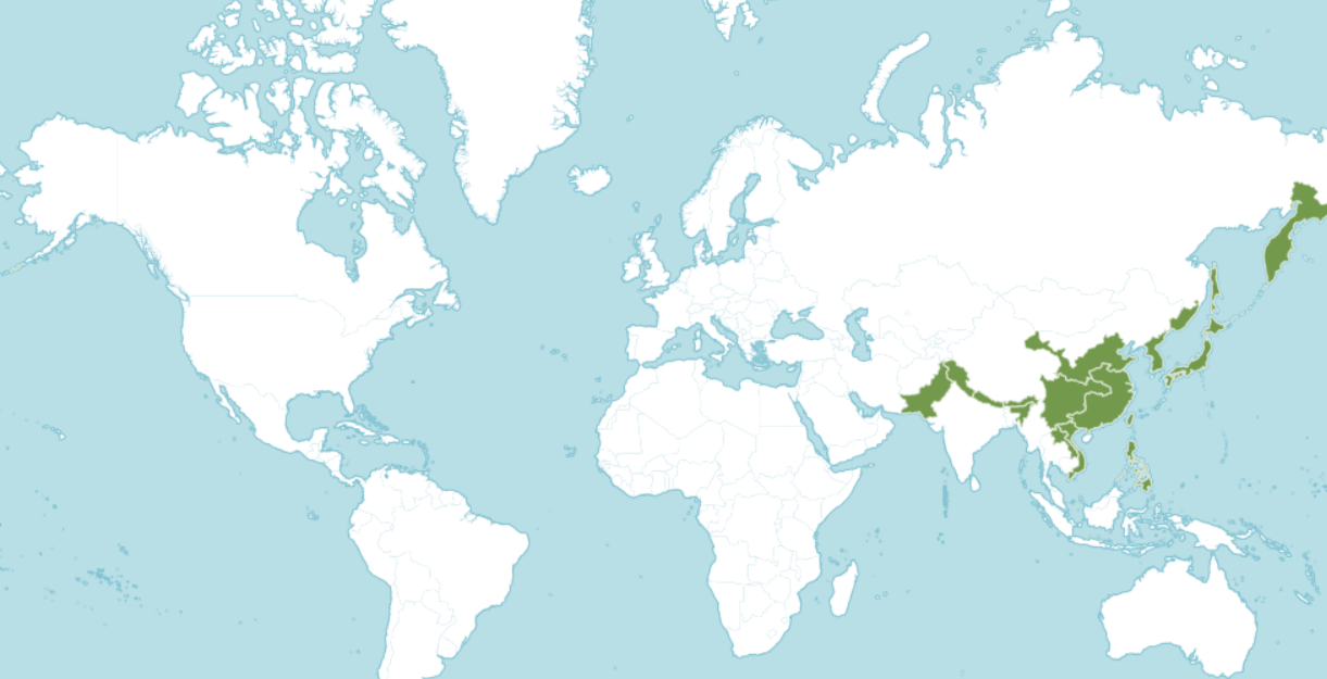 원산지는 파키스탄 북부에서 러시아 극동 및 필리핀, 알류샨 열도까지다.