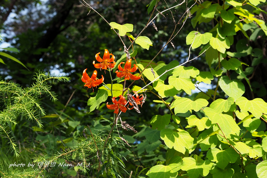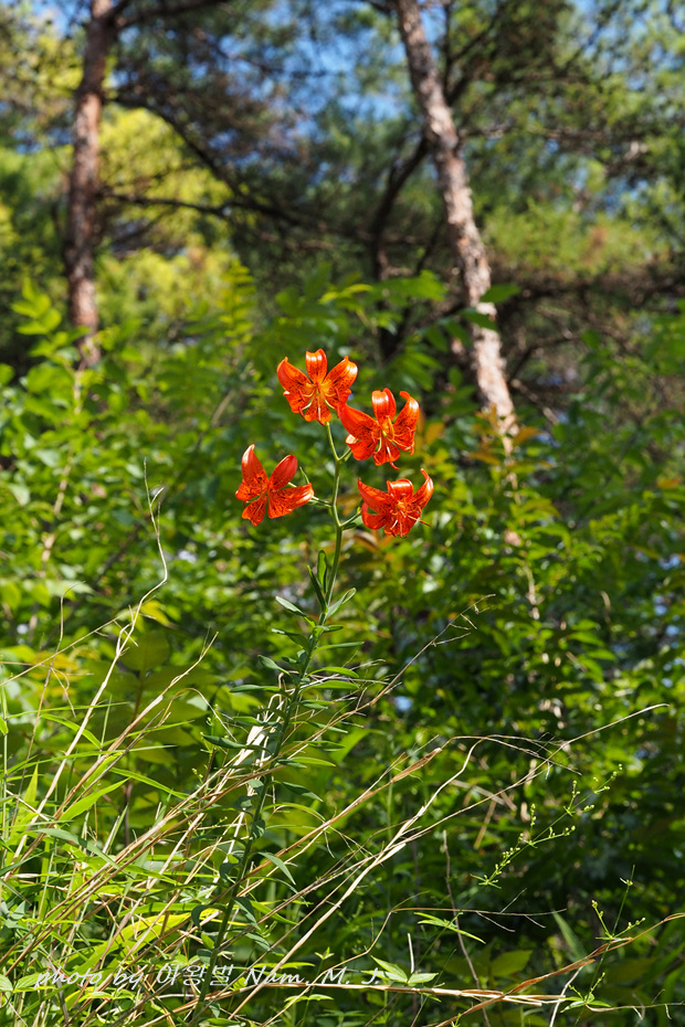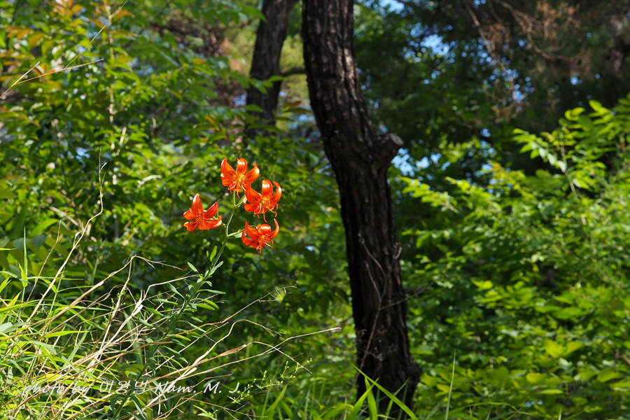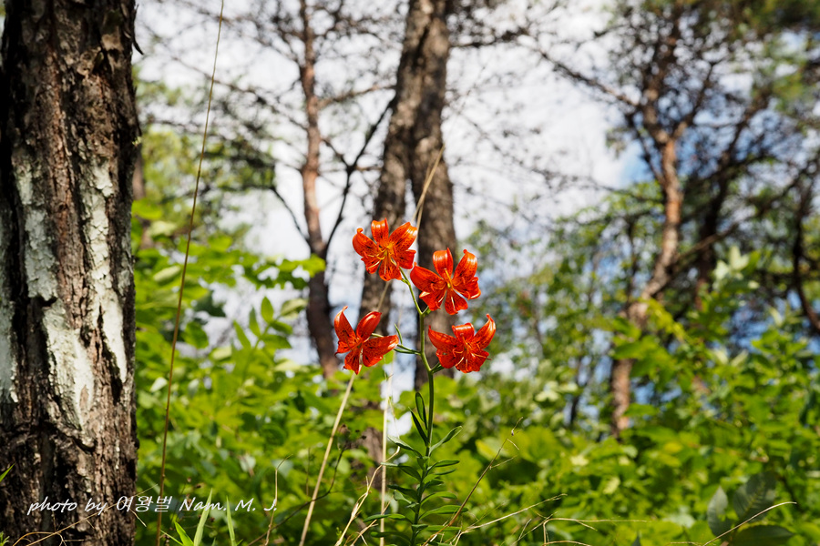 오랜만에 들렀던 산자락에 털중나리가 붉게 피어서 숲을 장식하고 있었다.