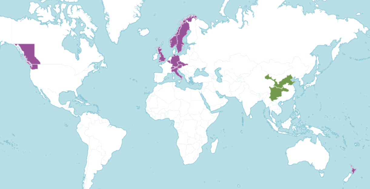 중국 북중부, 중국 중남부 및 중부 (간쑤, 구이 저우, 후베이, 쓰촨, 티베트 및 윈난)가 원산지이고 유럽에 귀화한 Cotoneaster dammeri 이다.