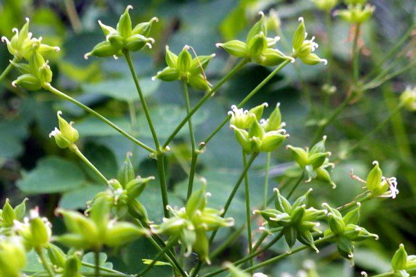 Thalictrum aquilegiifolium var. intermedium 의 열매는 납작하고 열매자루도 더 길고 전제적으로 느슨한 모습을 하고 있었다.