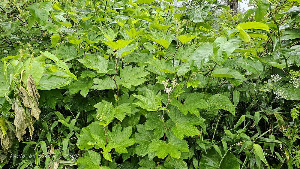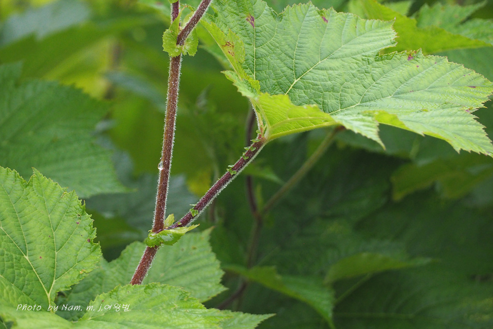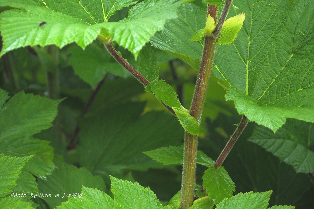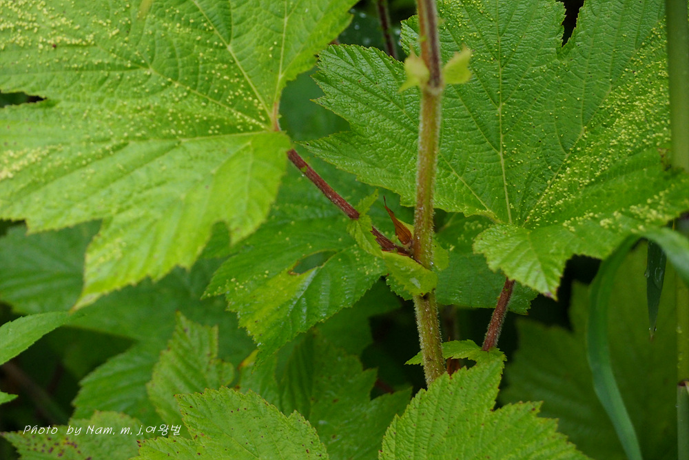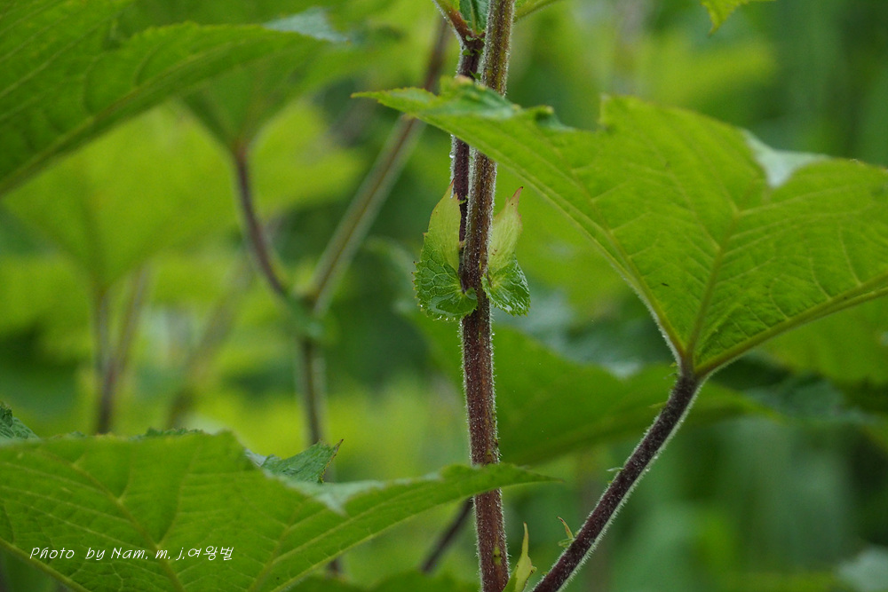 높이가 1~2m 에 달하며, 턱잎이 크고 단풍터리풀과 유사하나 잎이 더 크다.