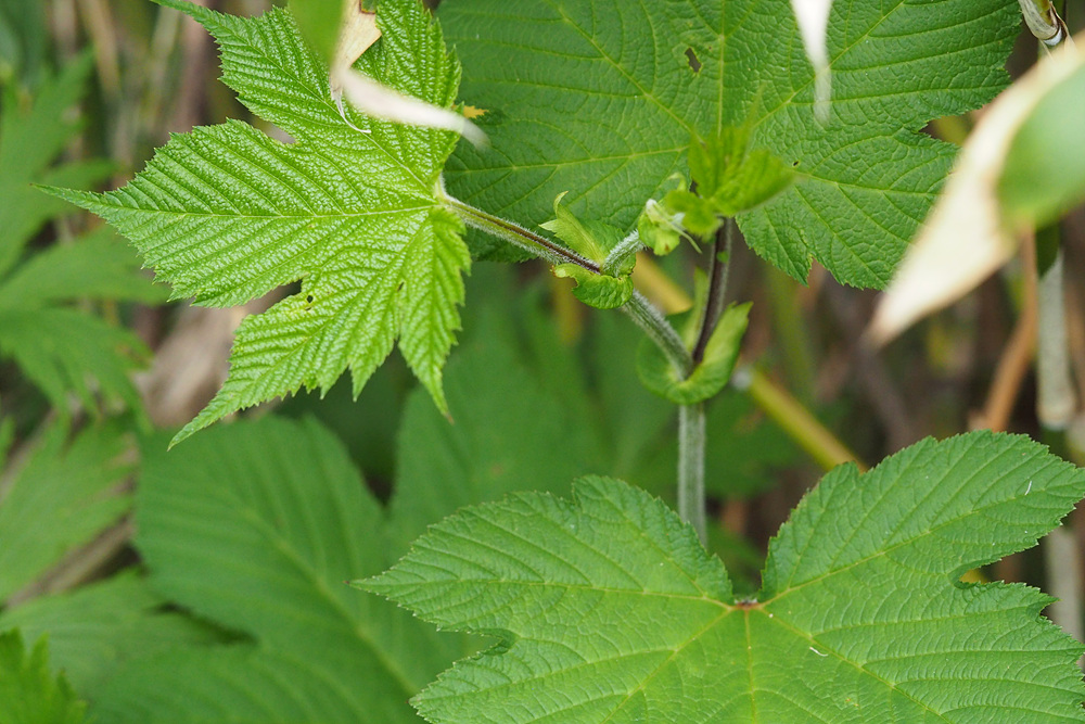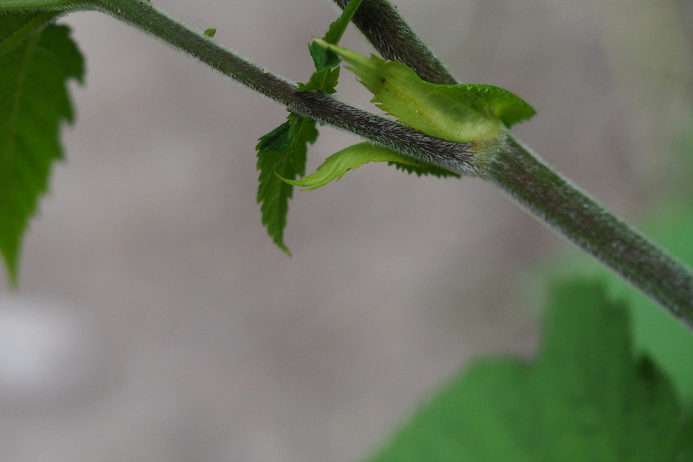 엽병에는 극소한 작은잎 몇 조각을 착생하며 턱잎은 반심장형으로 톱니가 있다.