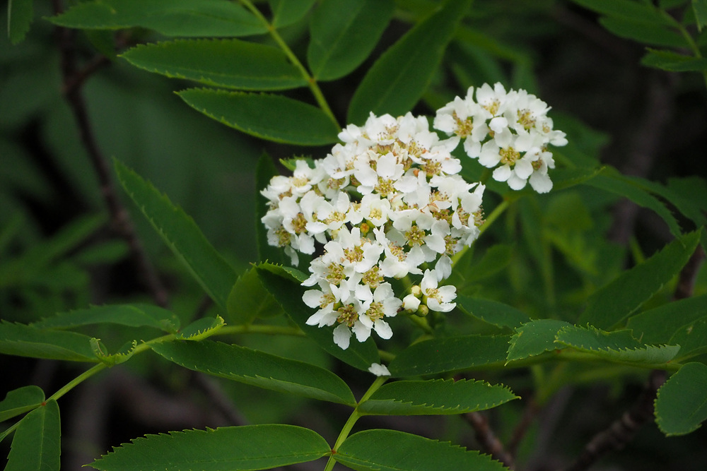 Sorbus sambucifolia 는 꽃잎 가장자리가 매끈하며 잎의 결각이 날카롭고 잎끝이 긴 형이다.
