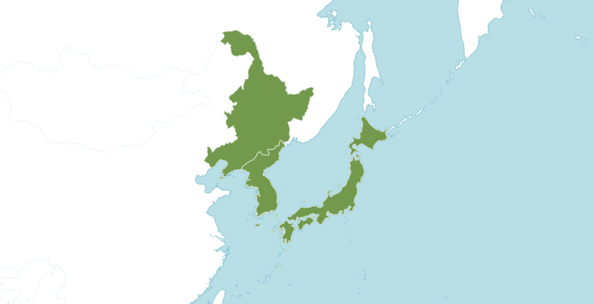 원산지는 중국 동부에서 한국(북한), 북일본 및 중앙 일본까지이다.