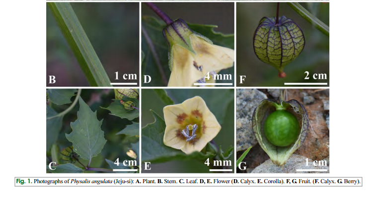 Physalis angulata L. 노란꽃땅꽈리 = P. acutifolia (Miers) Sandwith sensu Park