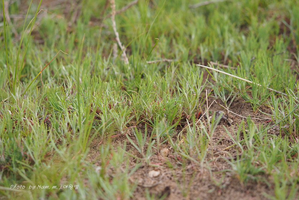 국내에서도 더러 내륙에서 만나는 솔장다리 비슷한 호모초속 어린 싹들과 지난 해의 삭정이가 눈길을 잡는다.
