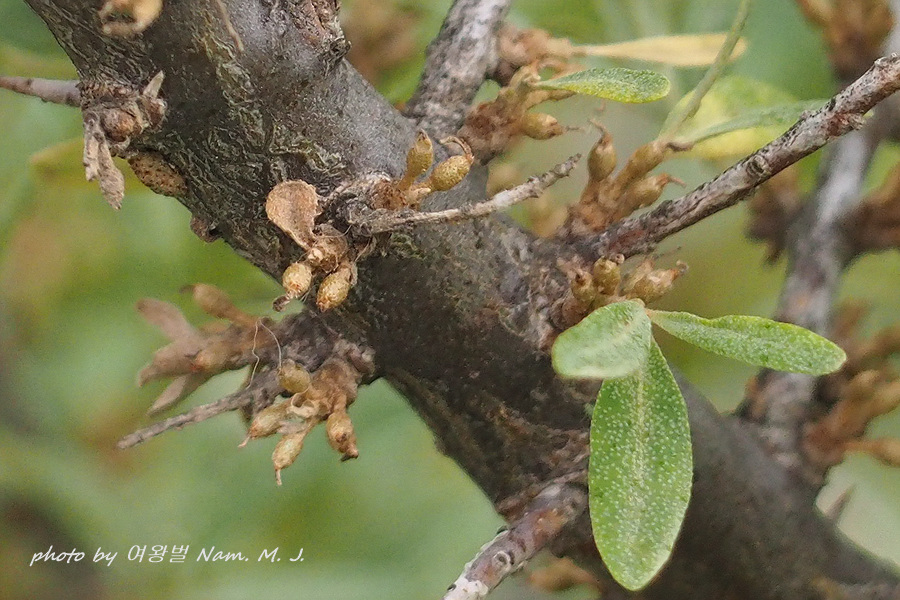 잎과 열매의 형태를 보면 보리수나무과 Elaeagnaceae 인 것 같다.