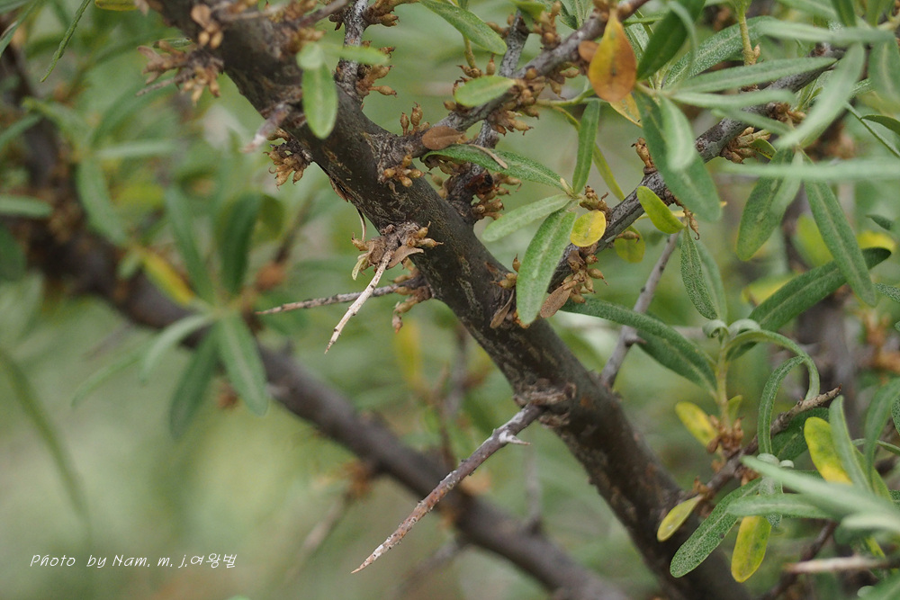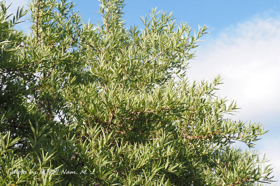 도감을 뒤져서 그림맞추기를 한 결과 Hippophae rhamnoides subsp. mongolica한 학명을 찾았다.