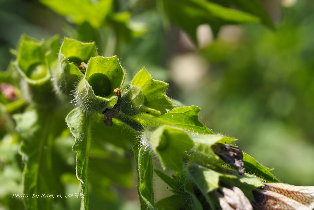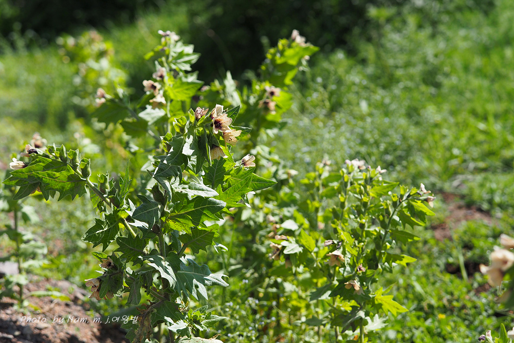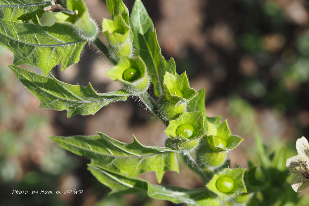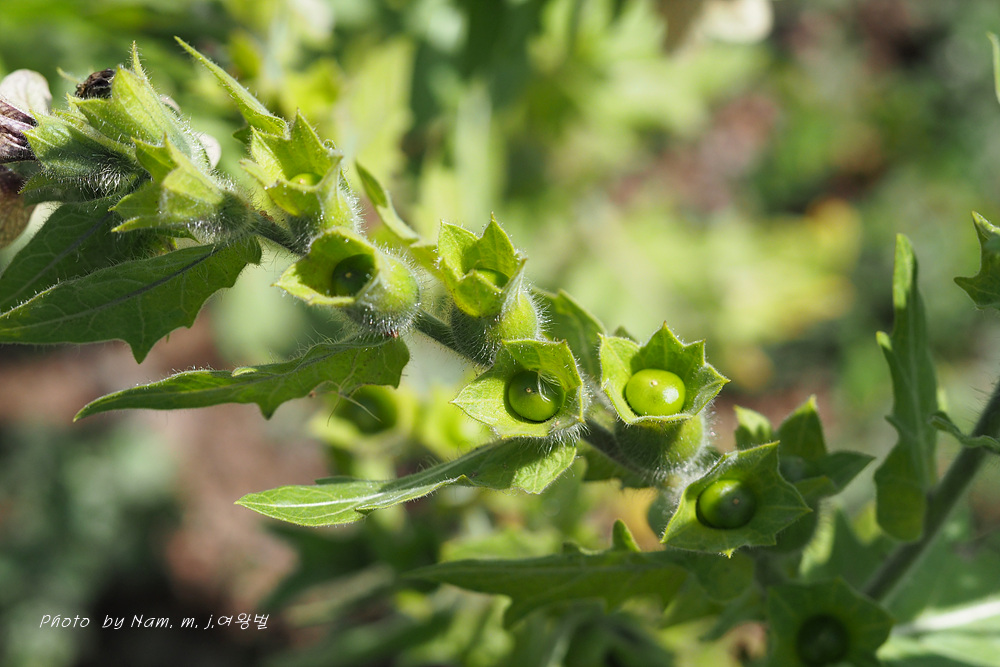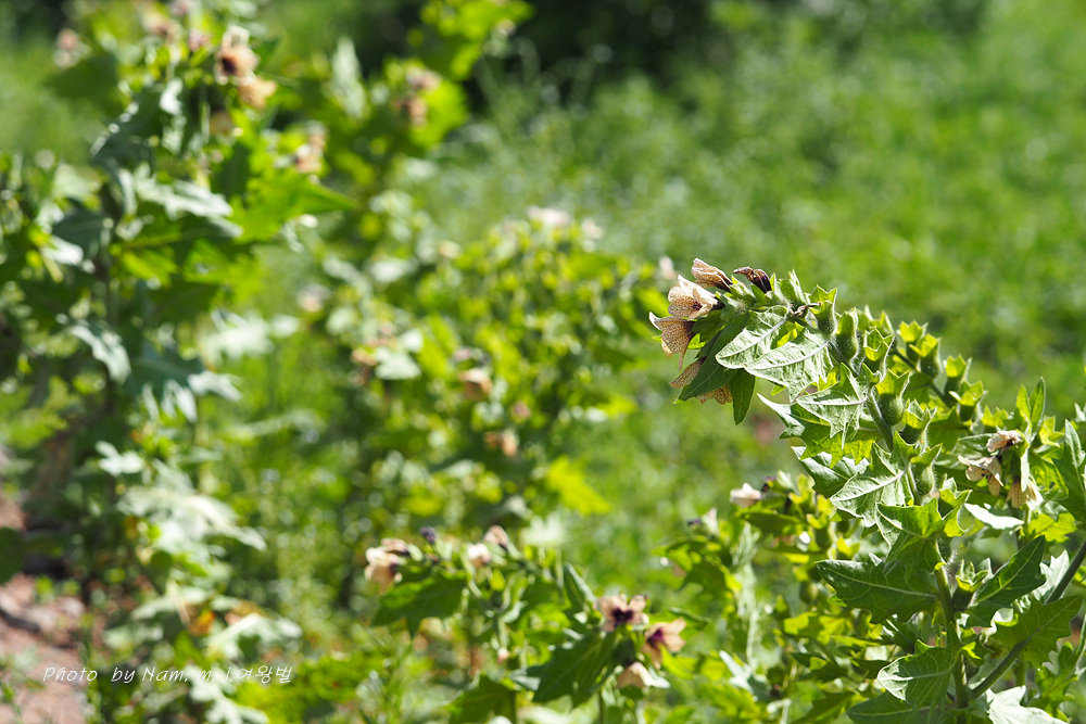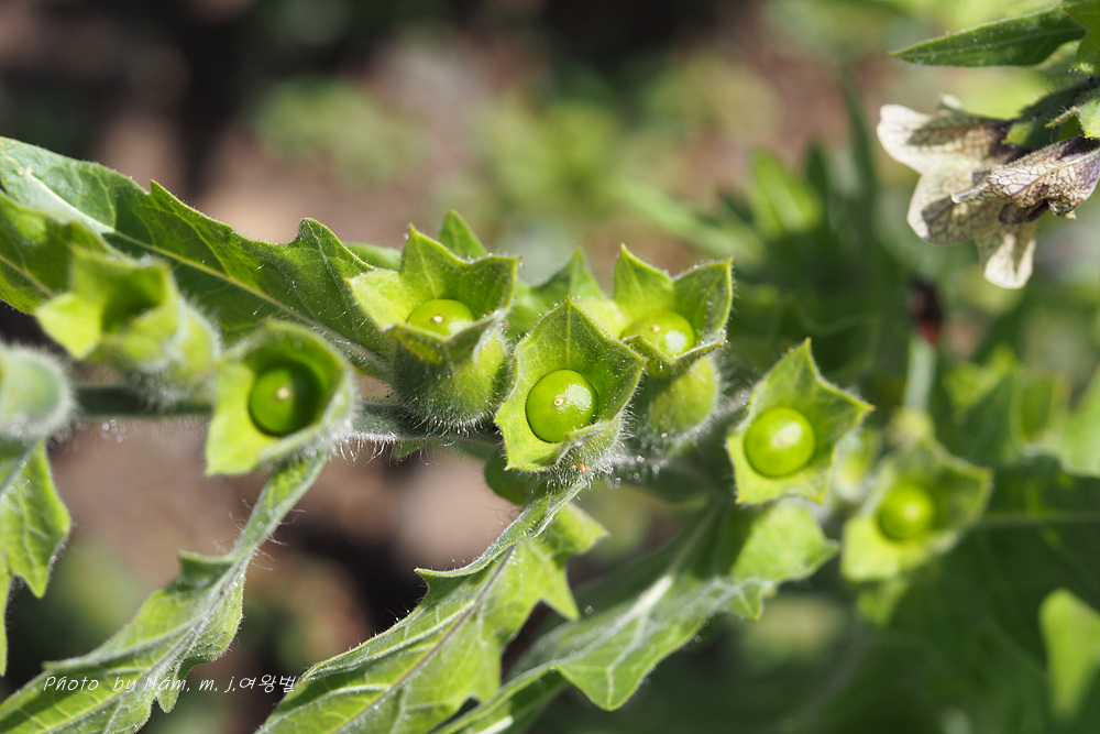마을 부근이나 초지에서 더러 나타나는 사리풀이 열매를 주렁주렁 달고 있다.