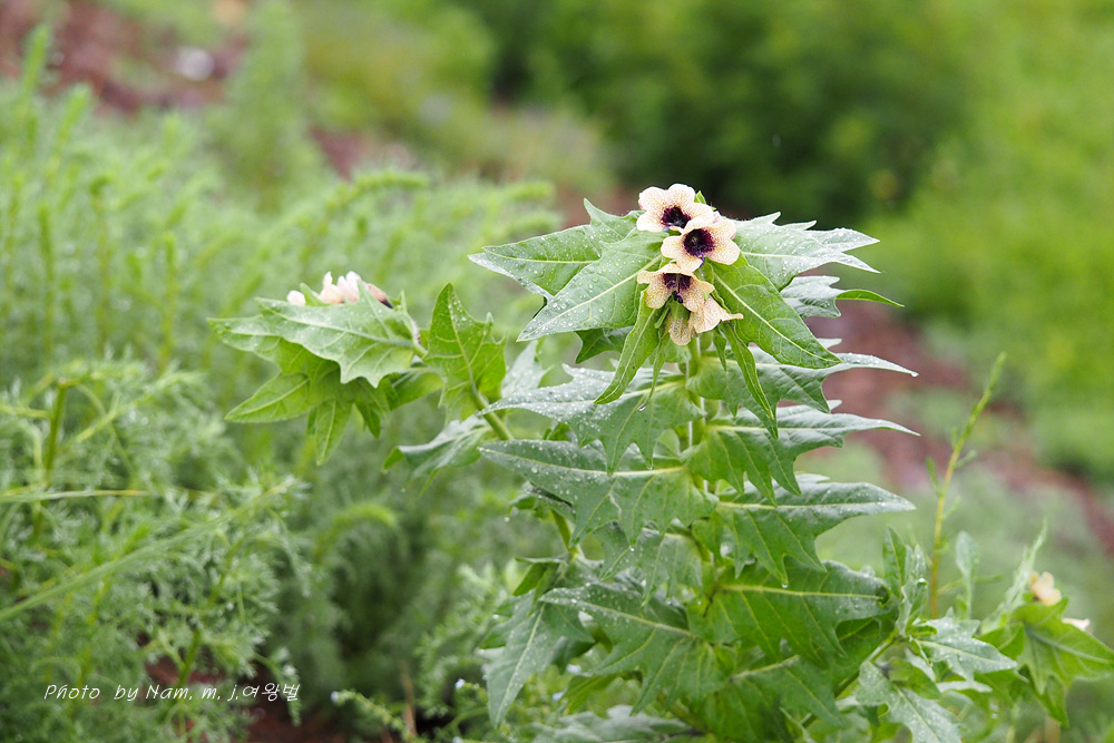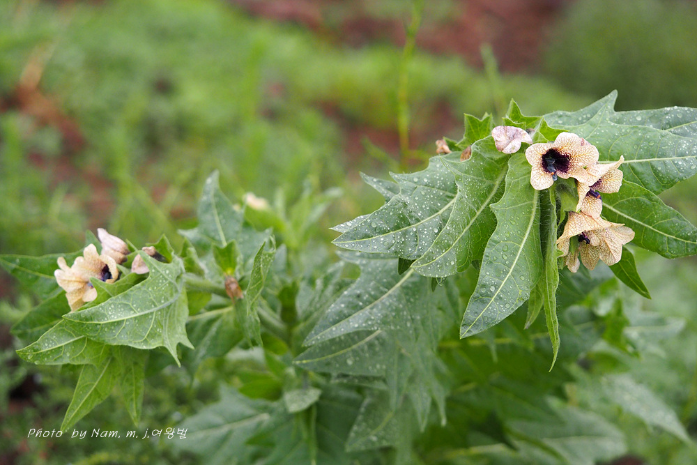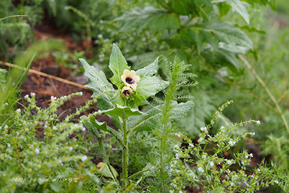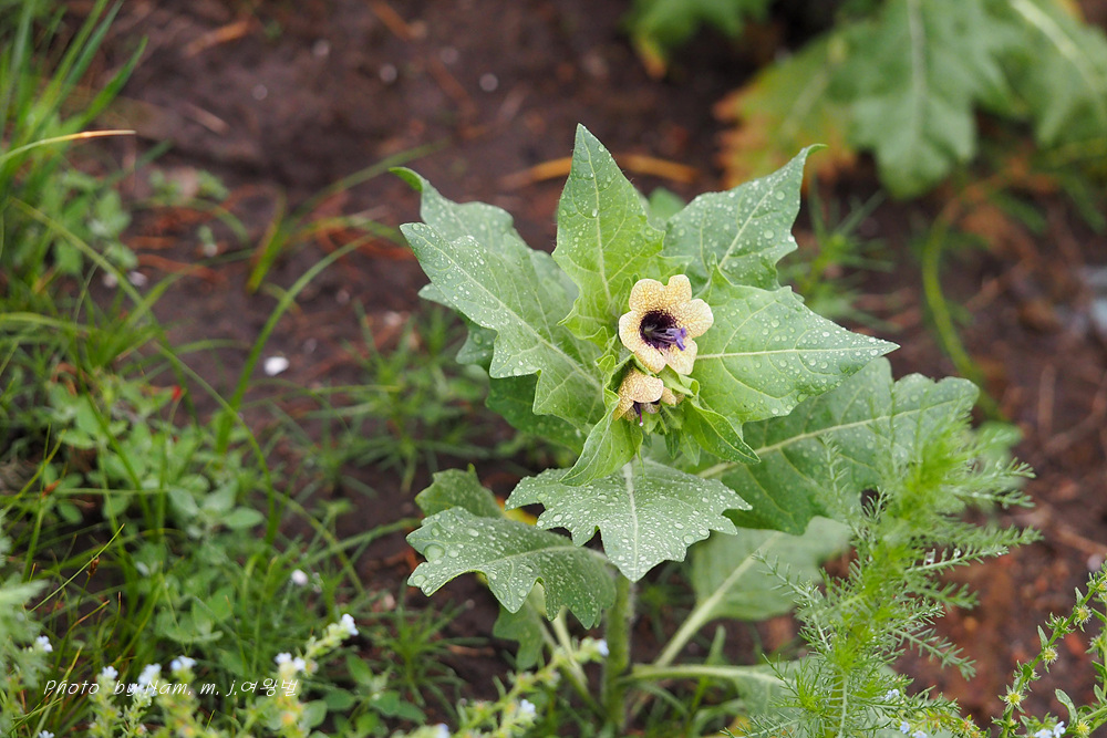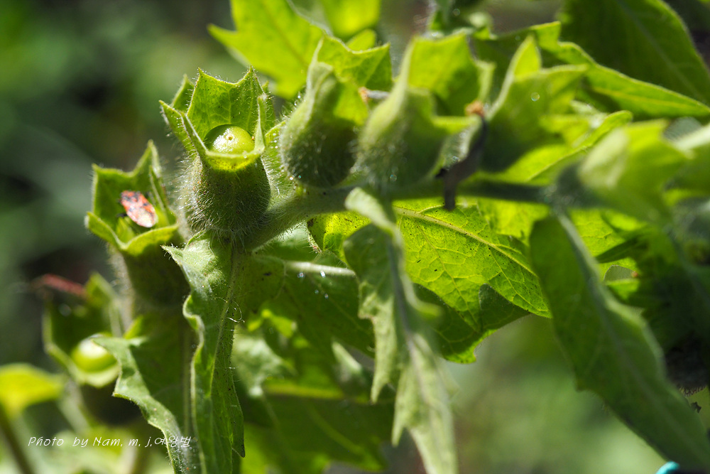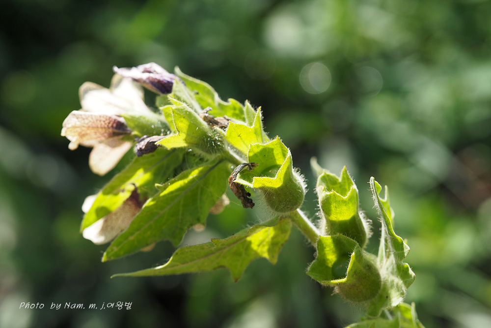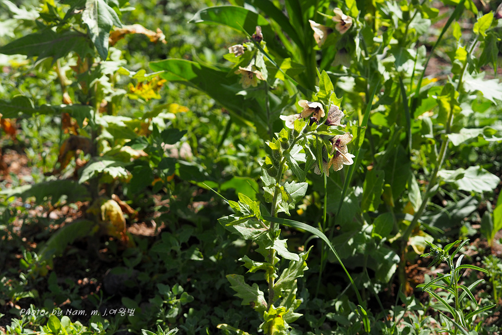 마을 부근이나 초지에서 더러 나타나는 사리풀이 열매를 주렁주렁 달고 있다.