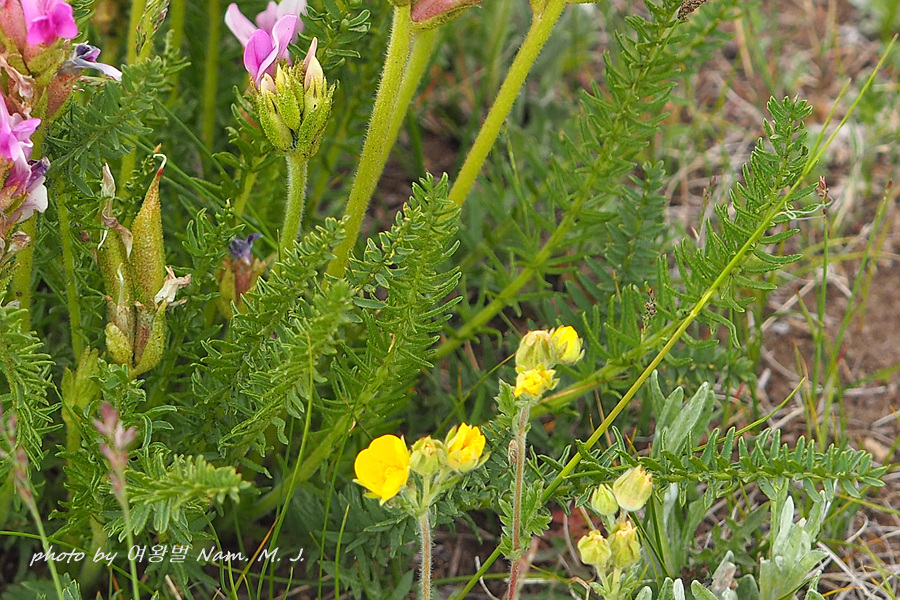 이 녀석도 김찬수박사의 알타이 식물탐사기에 실린 '잎많은두메자운 Oxytropis myriophylla' 으로 볼까 했더니 소엽의 크기가 더 넓은 녀석이다.