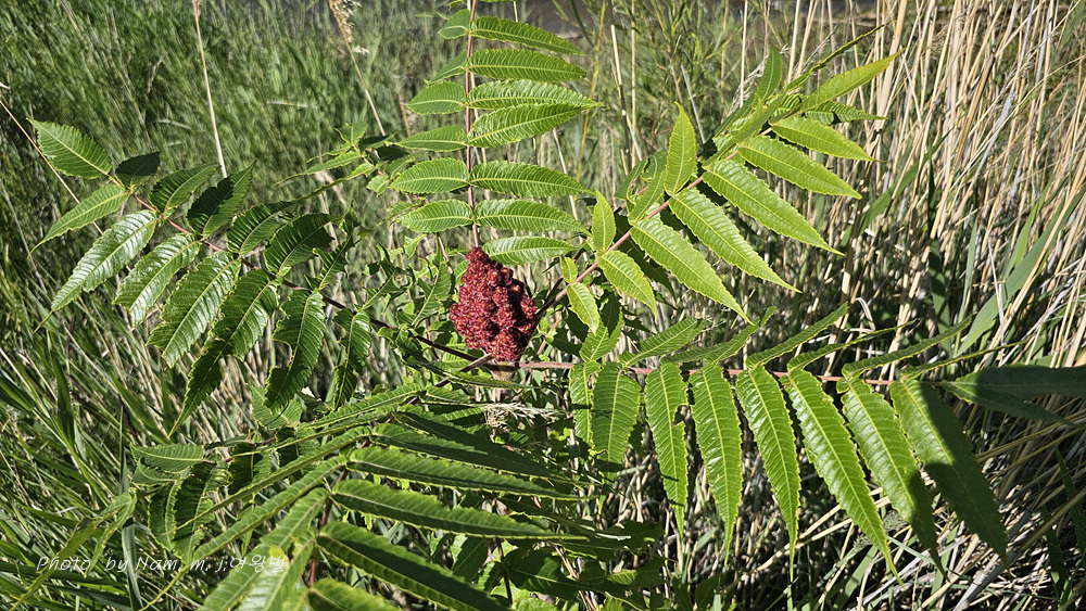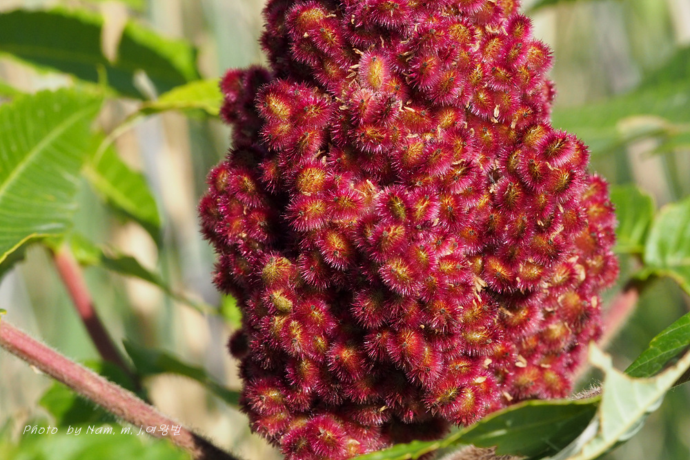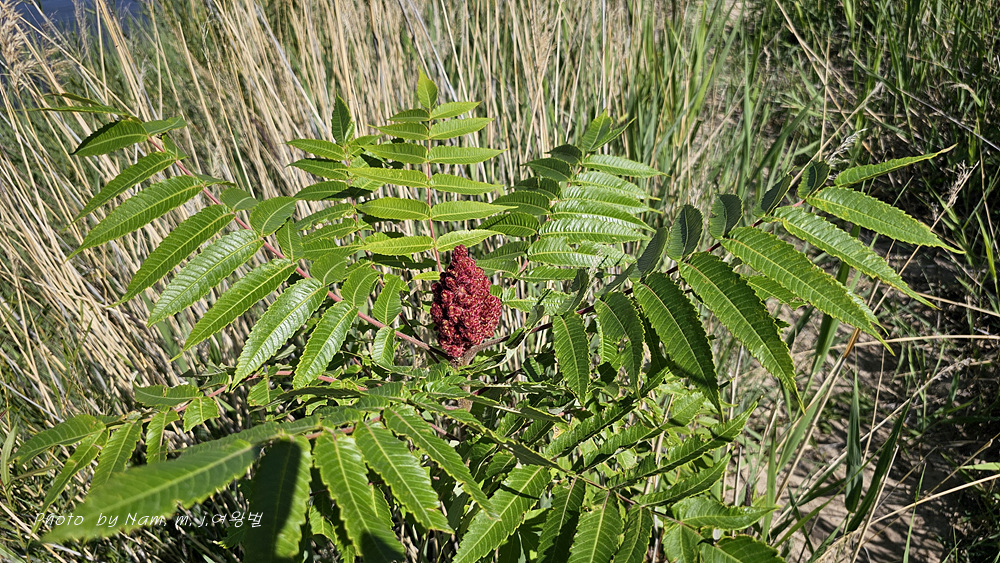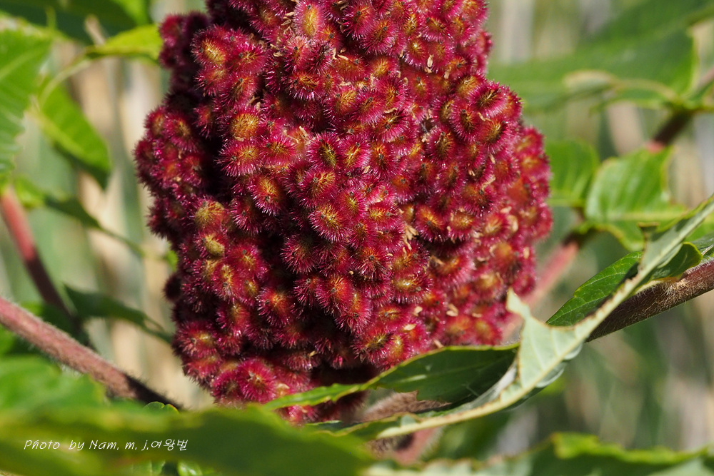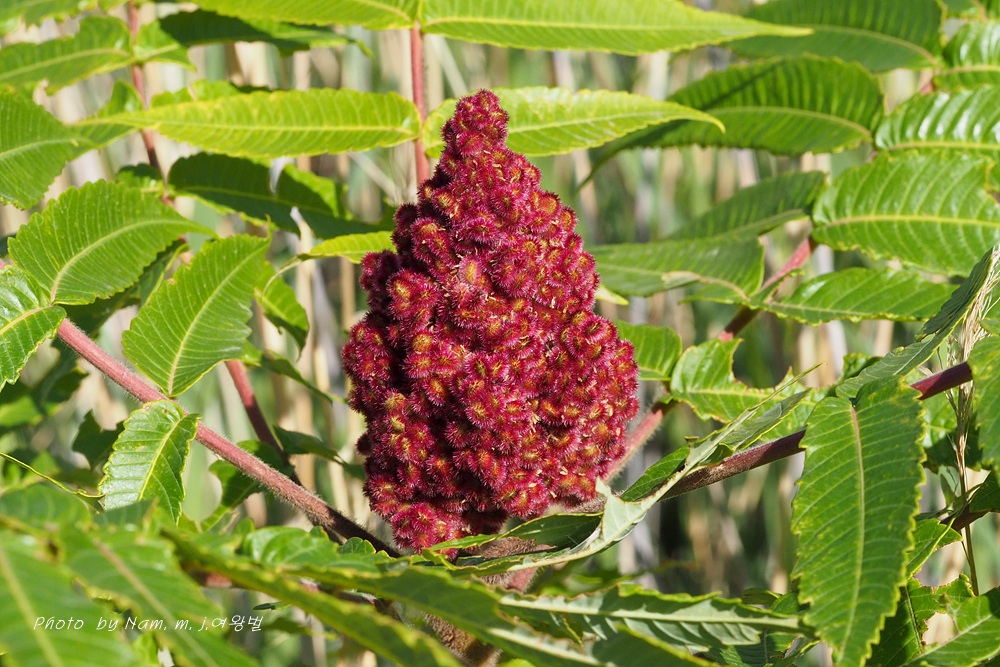 우리나라에 재배식물 목록에 들어 있는 미국붉나무 Rhus typhina 로 확인이 된다.