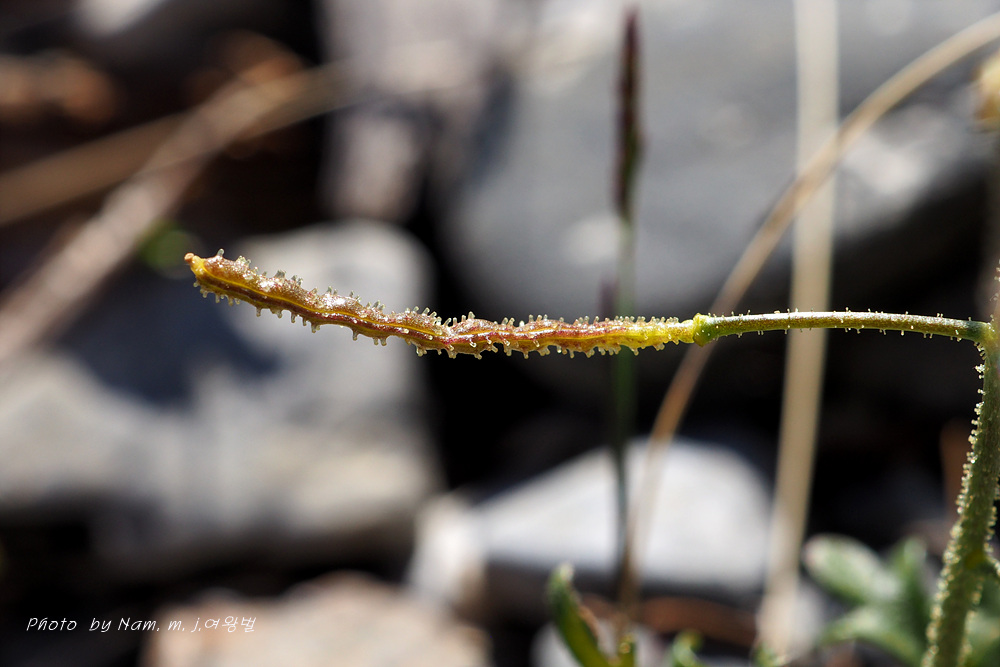 도감에서 학명은 Dontostemon pinnatifidus로찾았는데 그 학명으로 이미지를 검색하니 선모가 아닌 융모가 가득한 개제들이 검색된다.