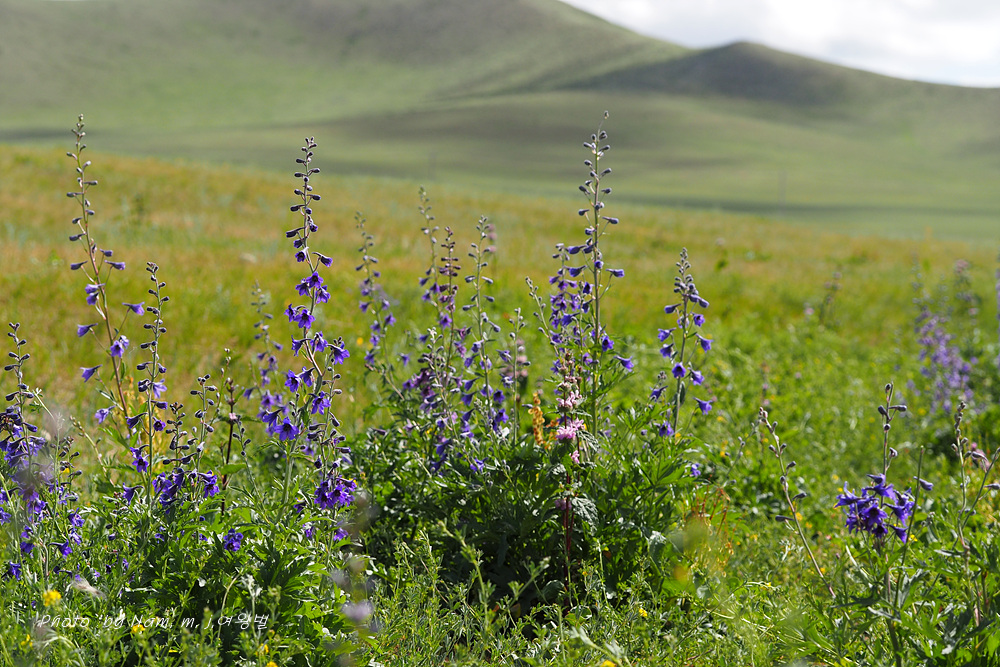 이동하는 중 완만한 구릉의 몰골 초지에 제비고깔 속 녀석이 무리지어 꽃을 피우고 있어서 차를 세웠다.