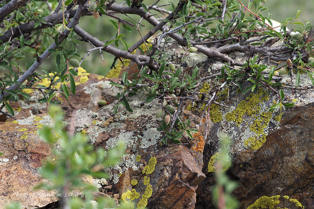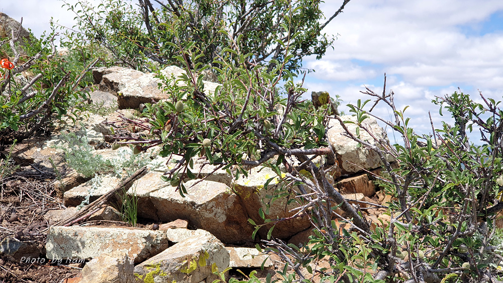 바위산을 탐사하려고 차를 세웠는데 작은 개복숭아같은 털부숭이 열매를 달고 있는 관목이 바위산 꼭대기에 나타났다.