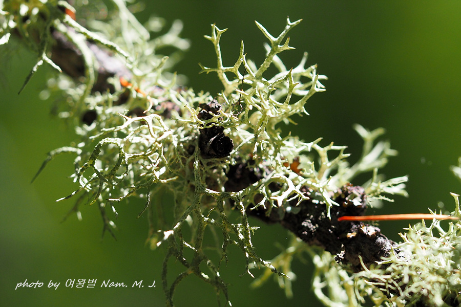 ㅎ수변 산 숲을 뒤지다가 죽은나뭇가지에 걸려 있는 지의류를 담았다.