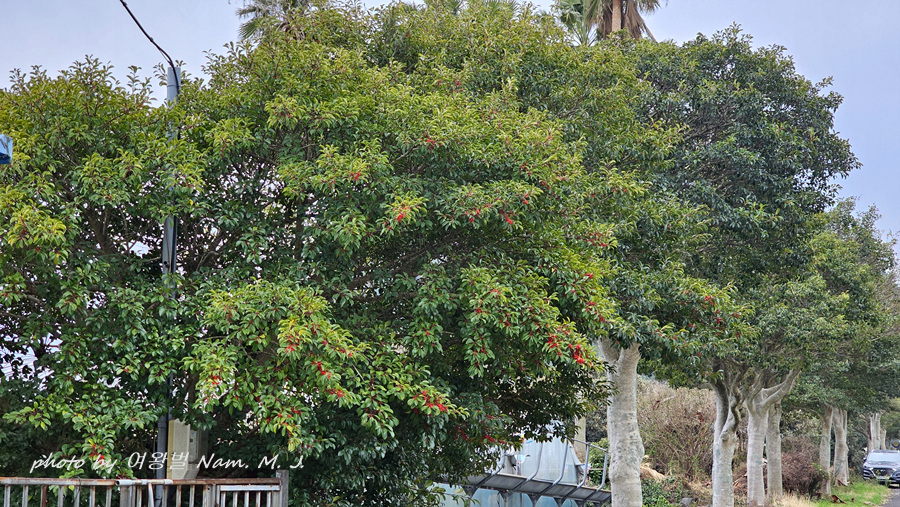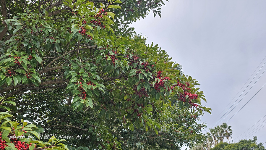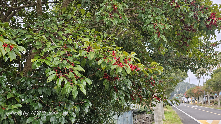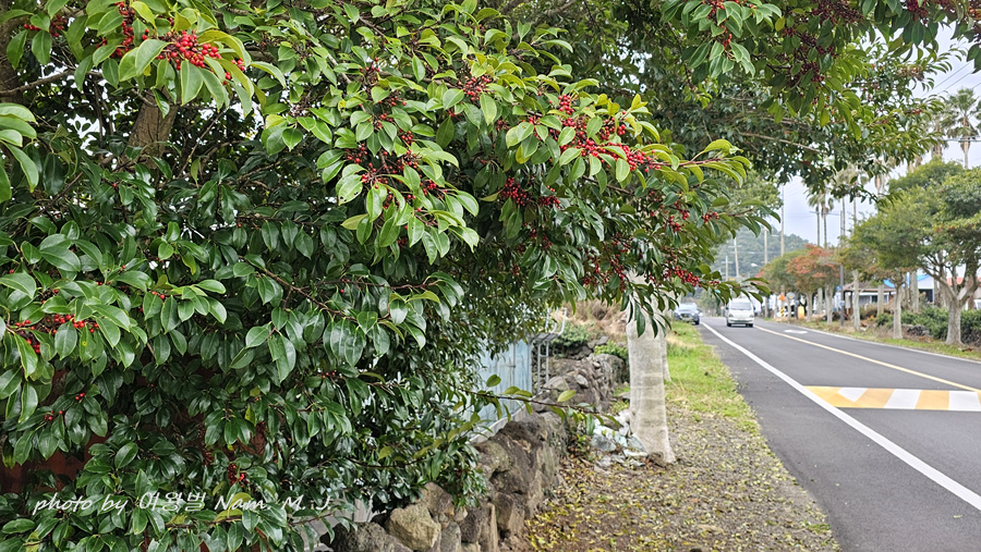 제주에는 도로변 가로수 중에서 먼나무를 많이 식재해 두었다.