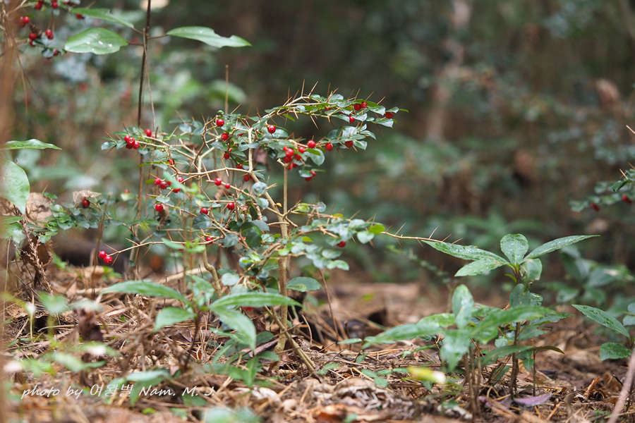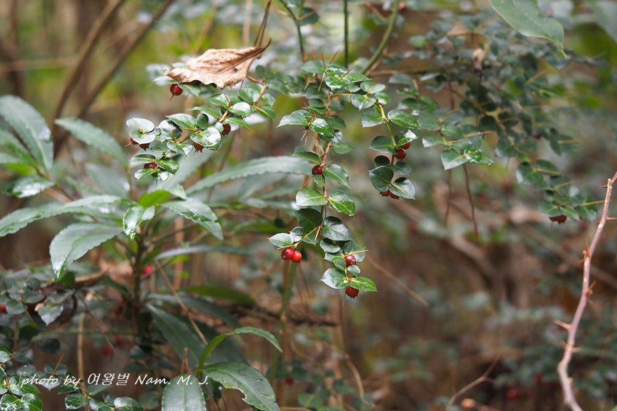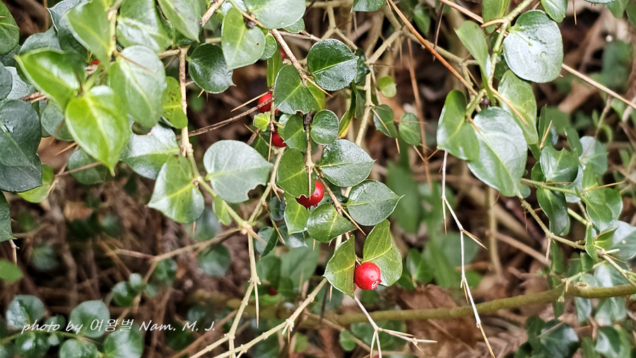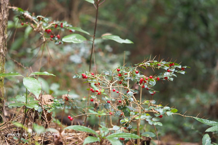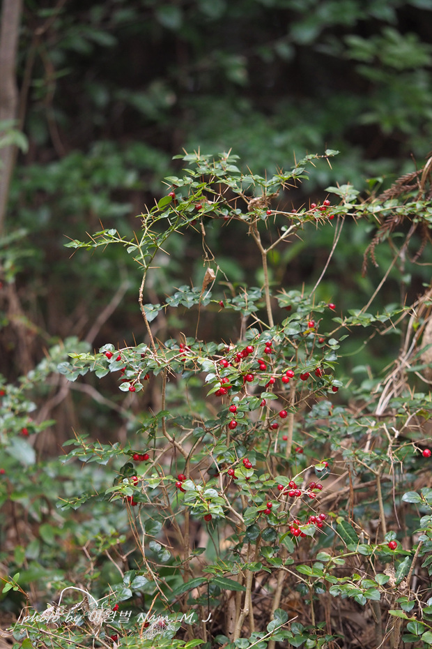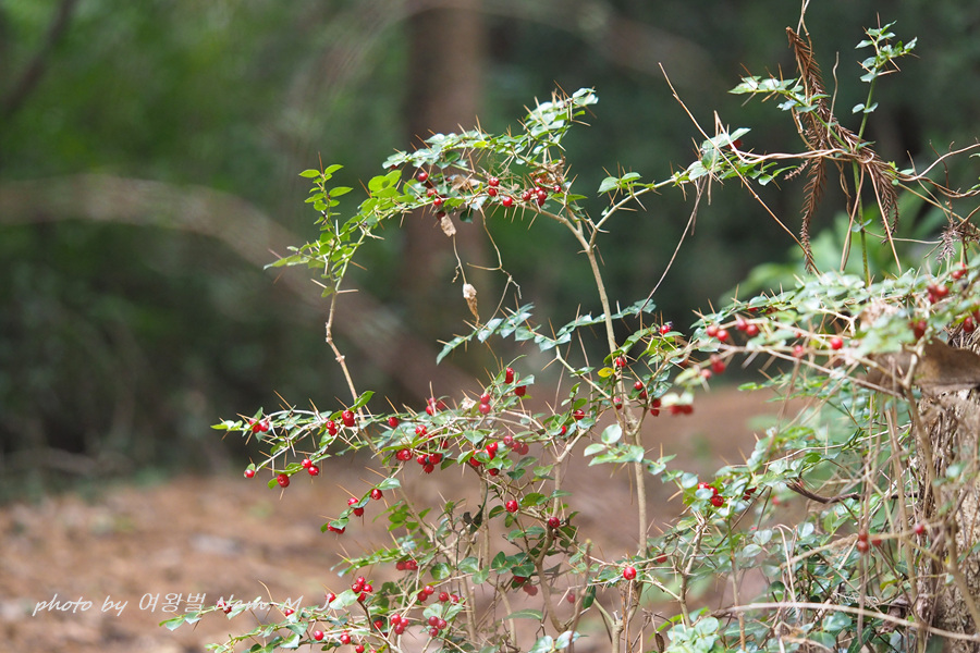 붉은 열매를 달고 있는 호자나무가 군락을 이루고 있지만 그림이 어두워서 이쁘지가 않다.