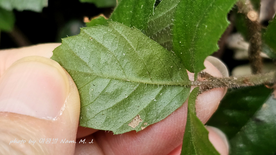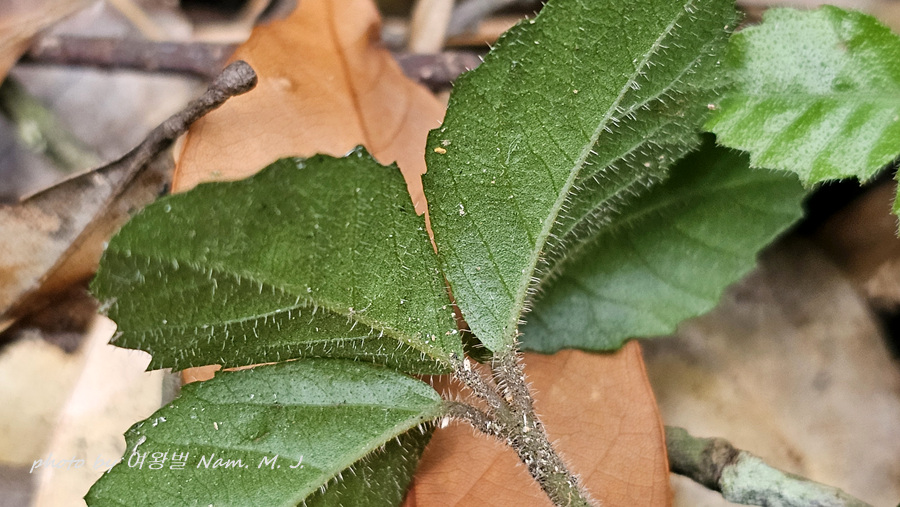 잎은 돌려나 층을 이루며 양면에 황갈색 털이 밀생한다
