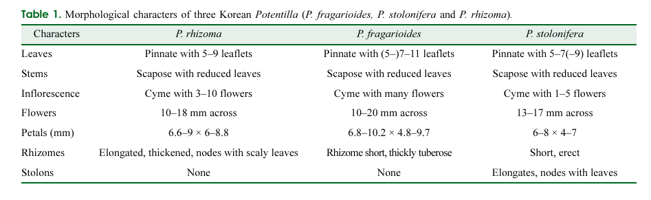 | P. rhi zoma | P. fragarioides(양지꽃) | P. stolonifera( | |