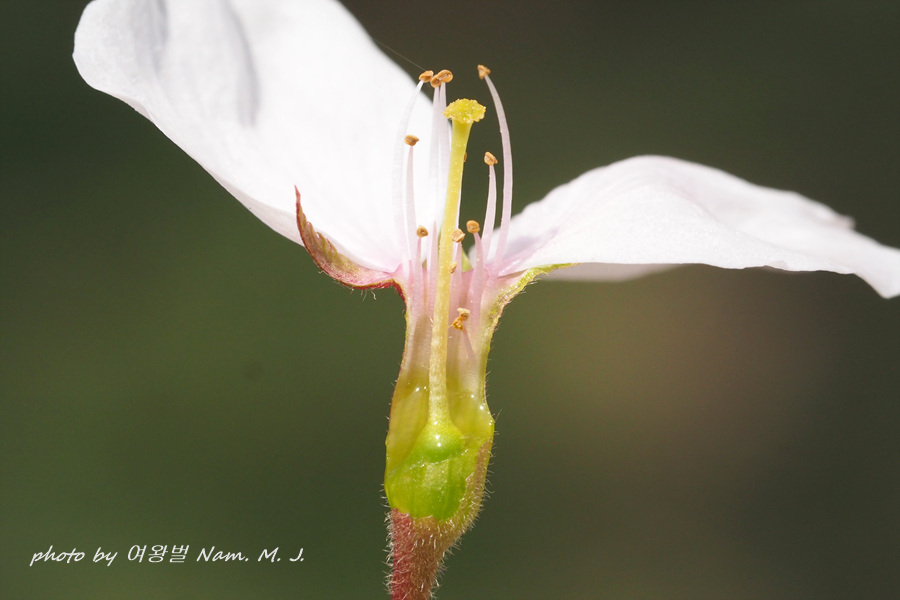 헌데 다행하게도 꽃자루와 꽃받침통에는 털이 있고 암술대에 털이 없는 잔털벚나무였다.