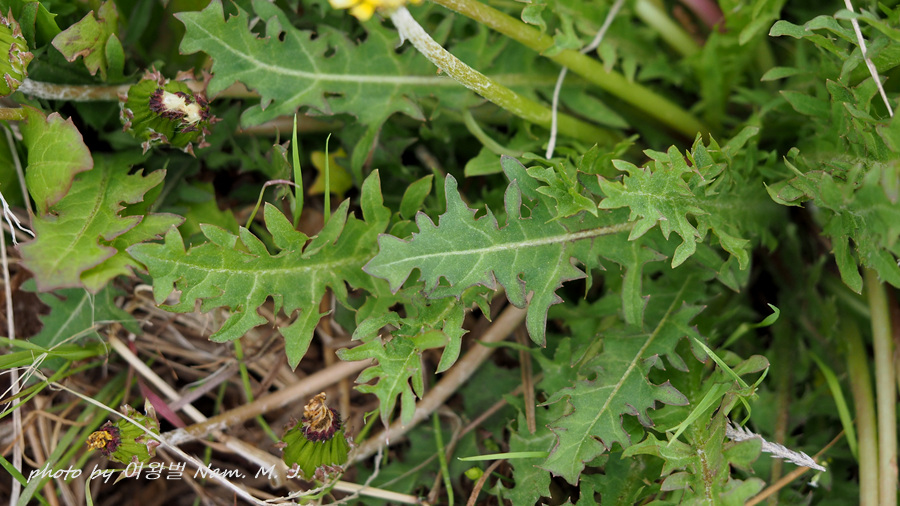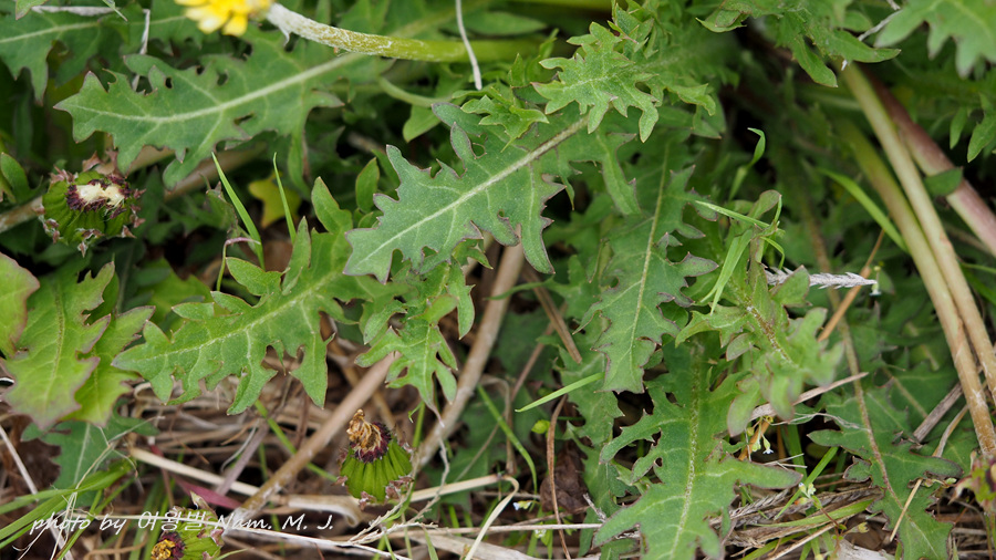 들쭉날쭉 불규칙한 잎의 톱니가 민들레나 서양민들레와 다르다.