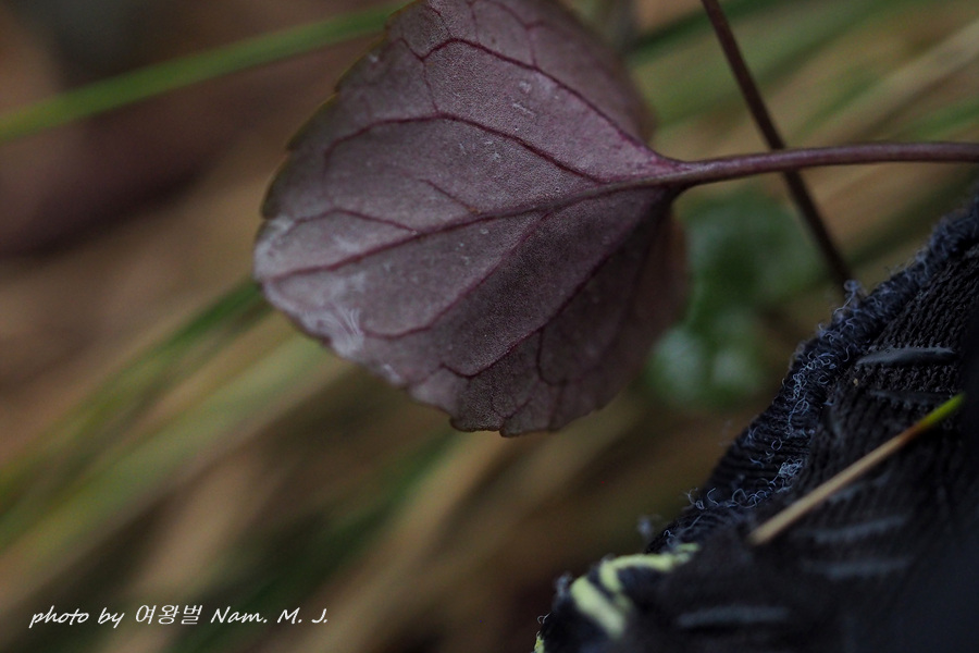 꽃은 흰색이었고 동그란 잎의 무늬가 잘 나타나지 않고 자색을 띠고 있었다.