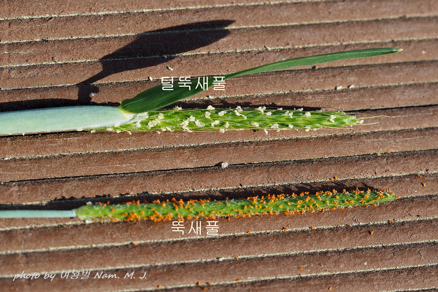 국내에 분포하는 뚝새풀속 식물 중 뚝새풀은 작은이삭이 작고 까락이 짧다.