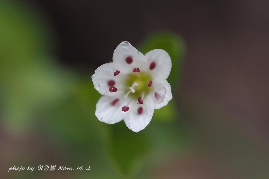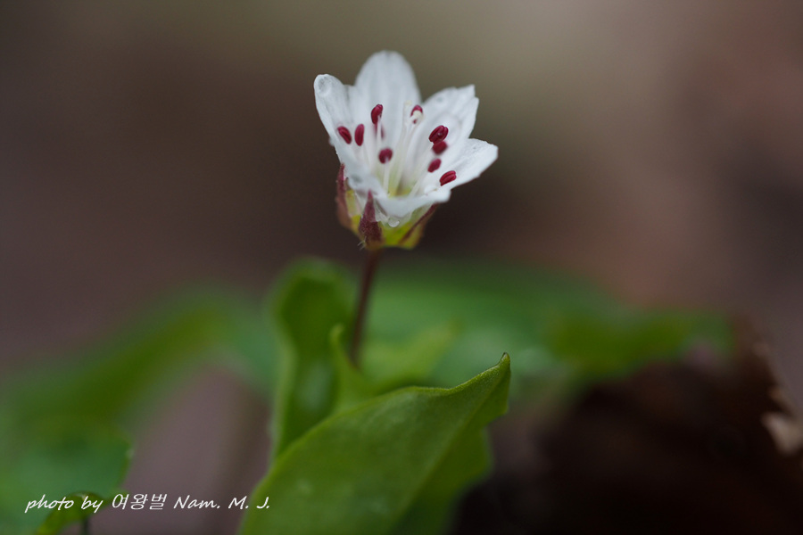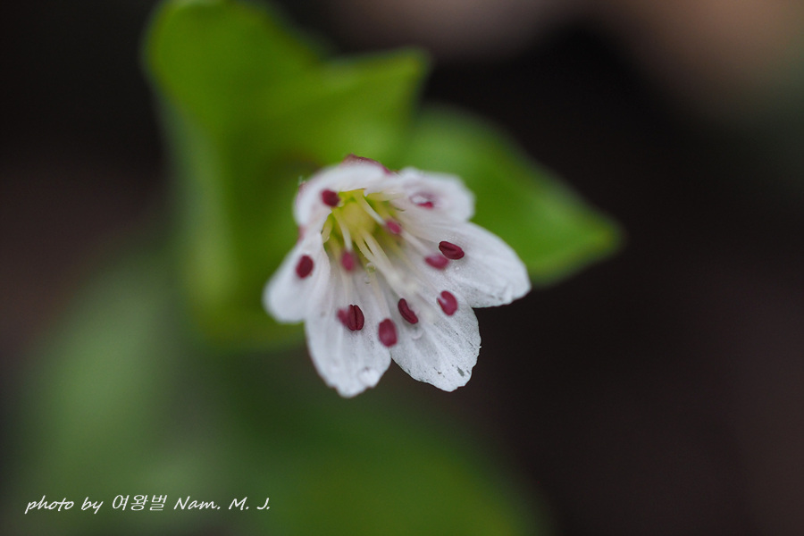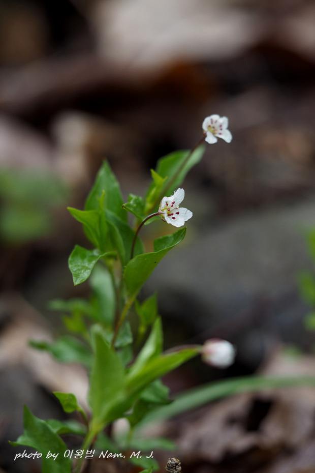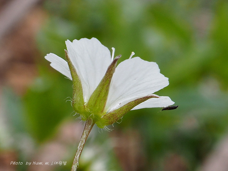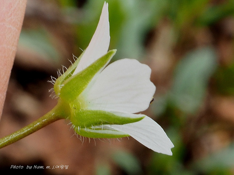 몸체는 큰개별꽃을 닮았고, 꽃잎이 5~6장에 끝이 둔한 원형, 꽃자루에 털이 있고 꽃받침에는 털이 드물게 있는 녀석.