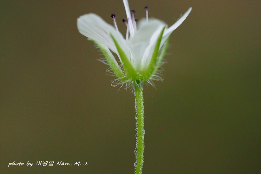 덩굴개별꽃의 꽃받침과 꽃자루의 백색털이 아주 풍성하다.
