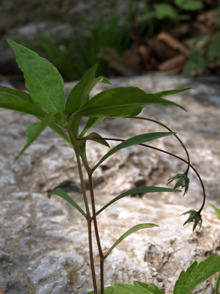 결실기에는 꽃자루가 이렇게 길어져서 아래로 늘어진다.