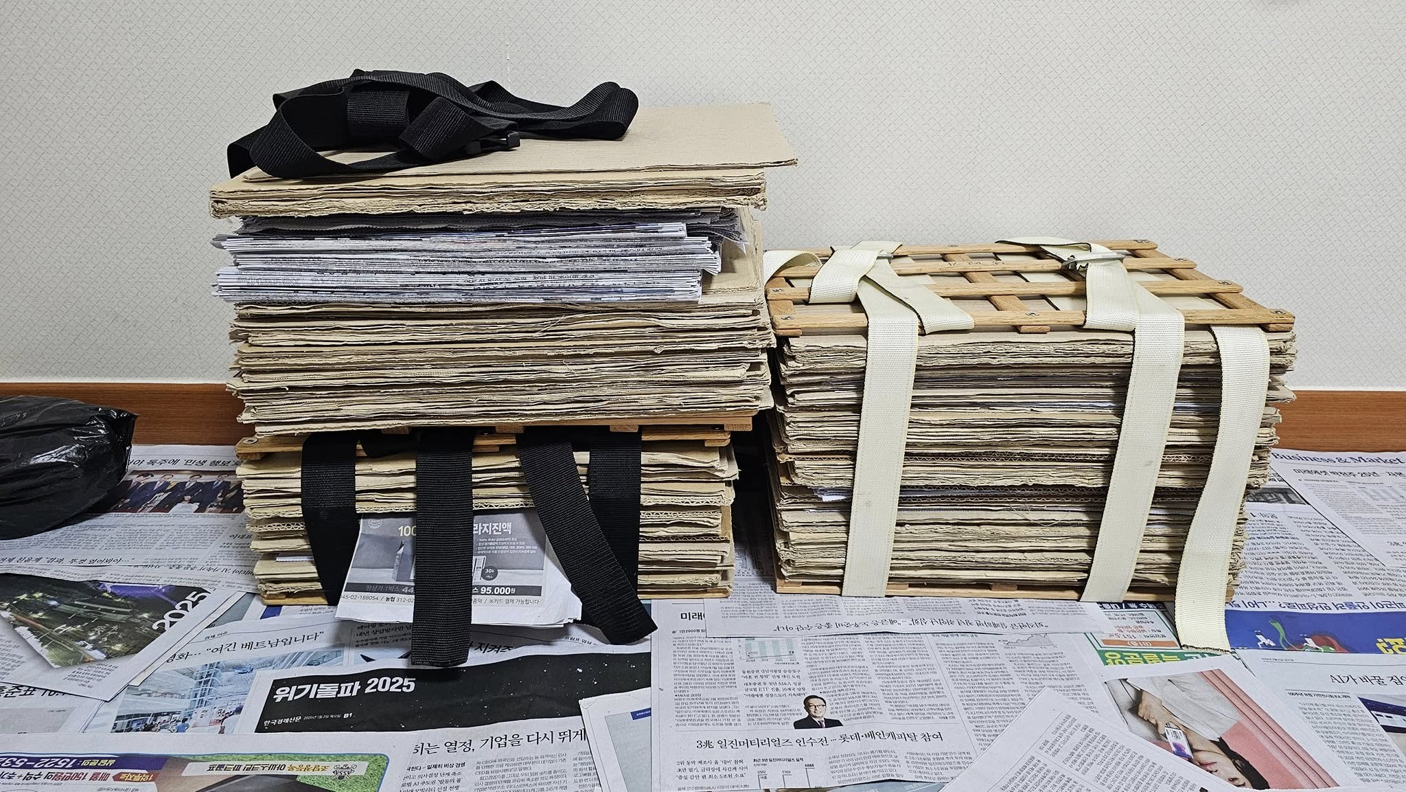 소청도까지 차량 선박이 되지 않으니 신문과 골판지를 손수레에 싣고 갔다.