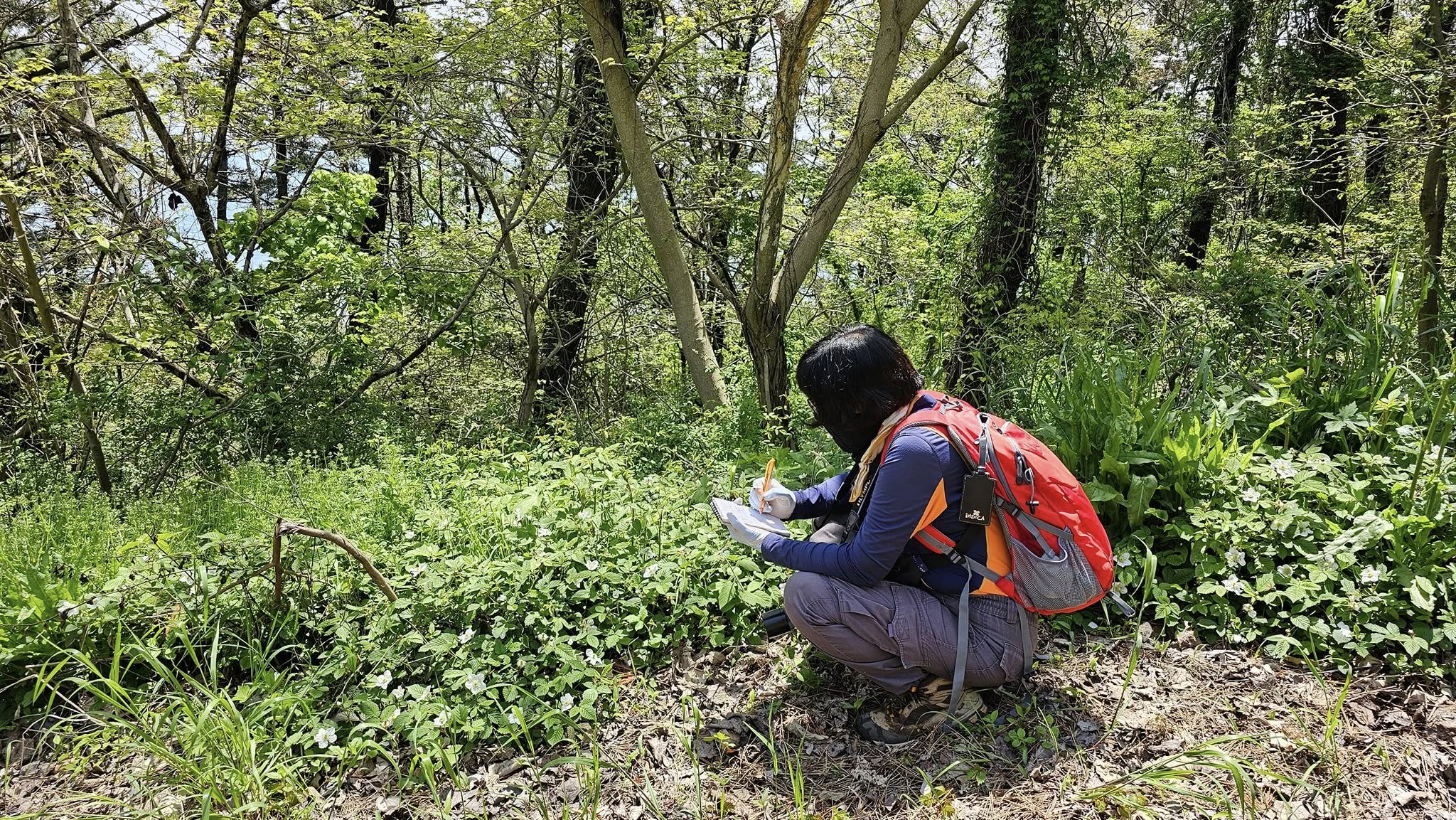 나는 종목록 기록하고 동행 연구원은 표본 채집하고
