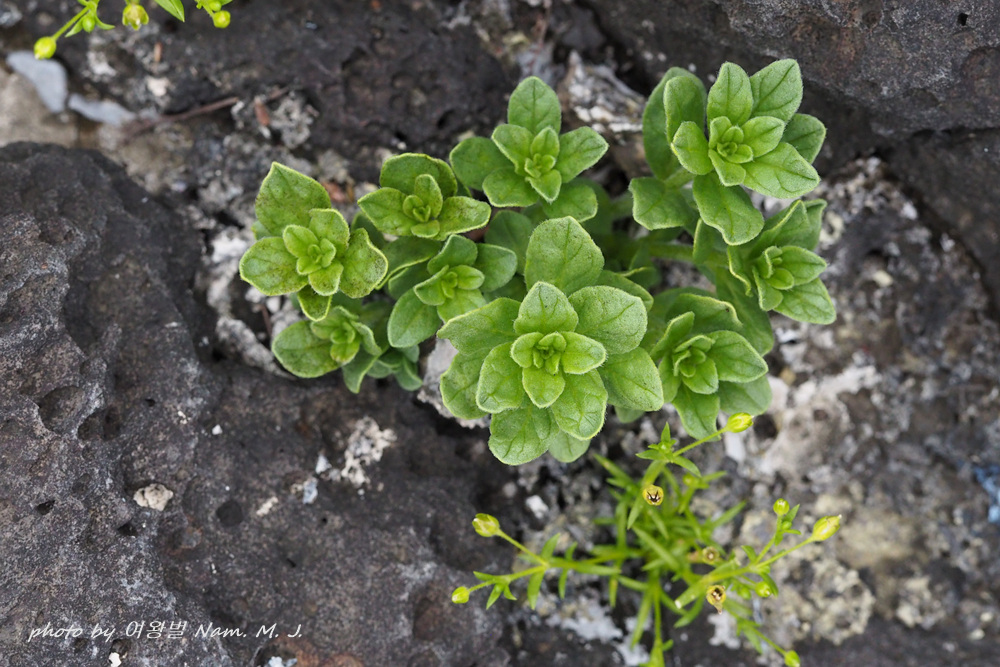 해안 현무암 암반 틈 사이에 터를 잡고 용케도 꽃을 피우고 산다.