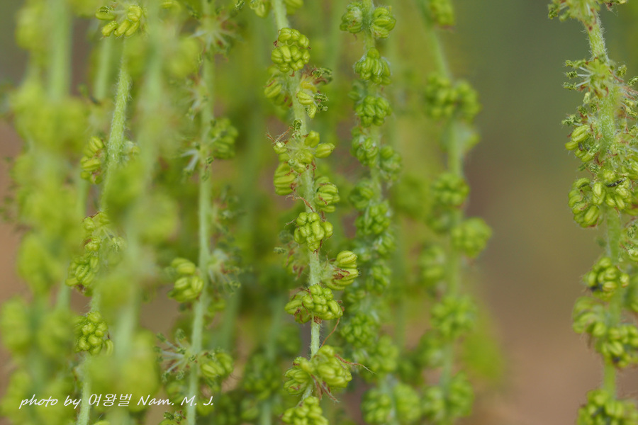 수꽃은 주렴처럼 아래로 줄줄이 늘어져 있다.