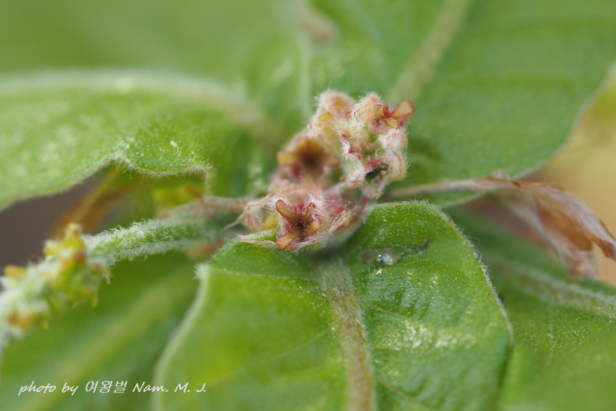 꽃자루를 세우는 경우도 있는데 암꽃이 끝에, 아래는 수꽃이 함께 핀다