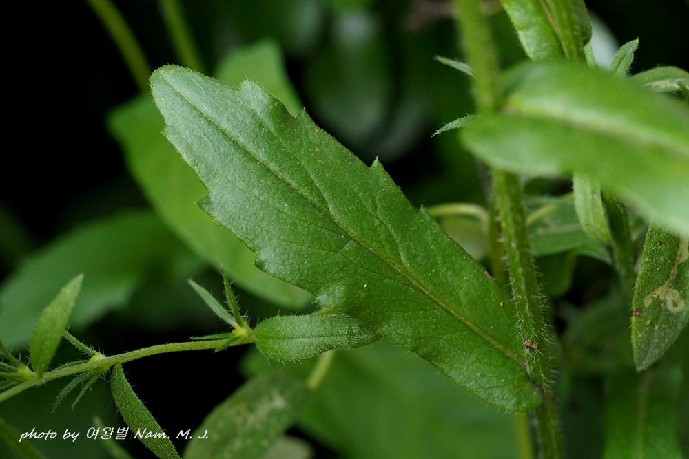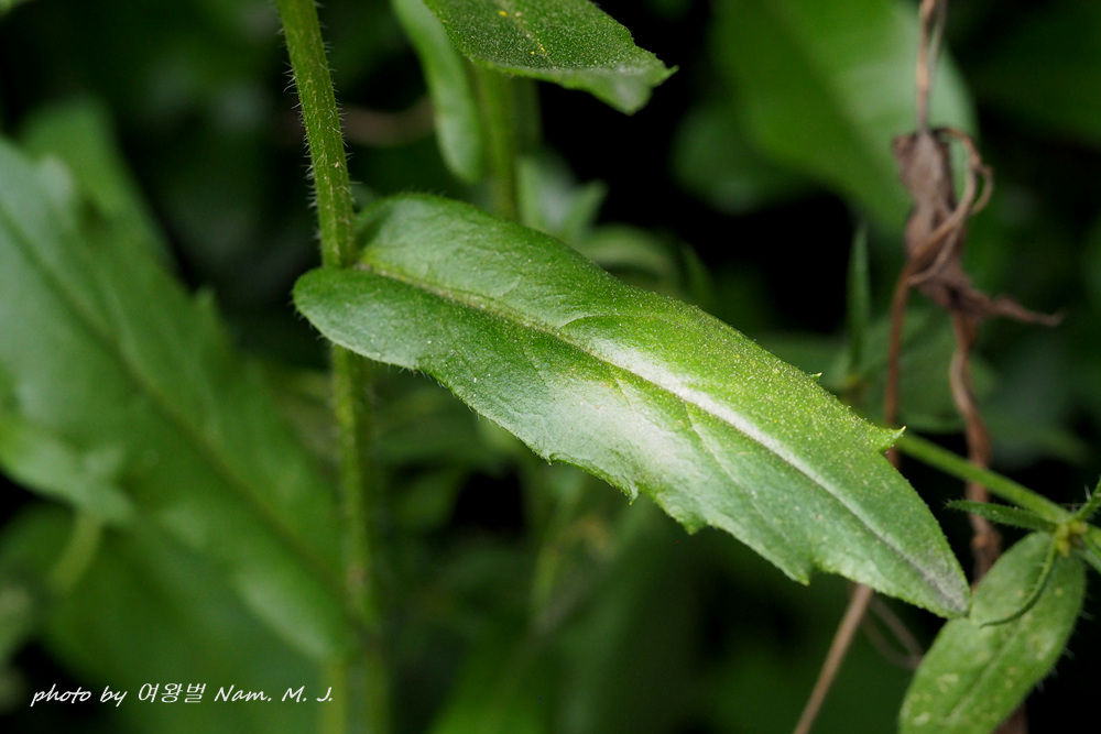 개망초보다 설상화가 무척 많으며 엽저가 줄기를 감싸고 줄기 속이 비어 있는 특징이 있다.