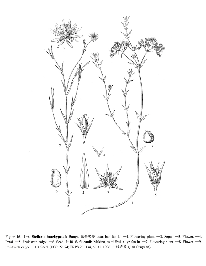 실별꽃 Stellaria filicaulis (7-10)의 세밀화이다