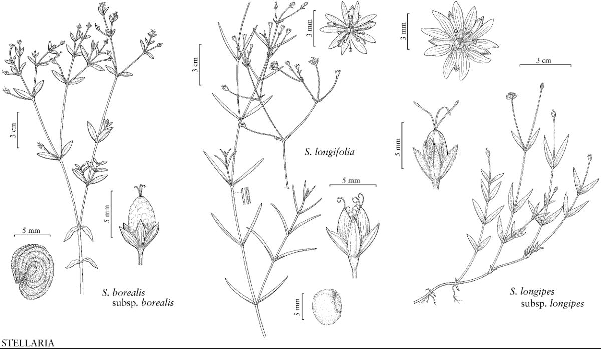 긴잎별꽃 Stellaria longifolia 세밀화 : 유타주립대학교 파일:FNA5 P13 Stellaria borealis.jpeg - FNA