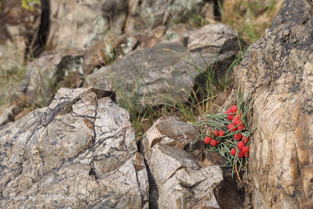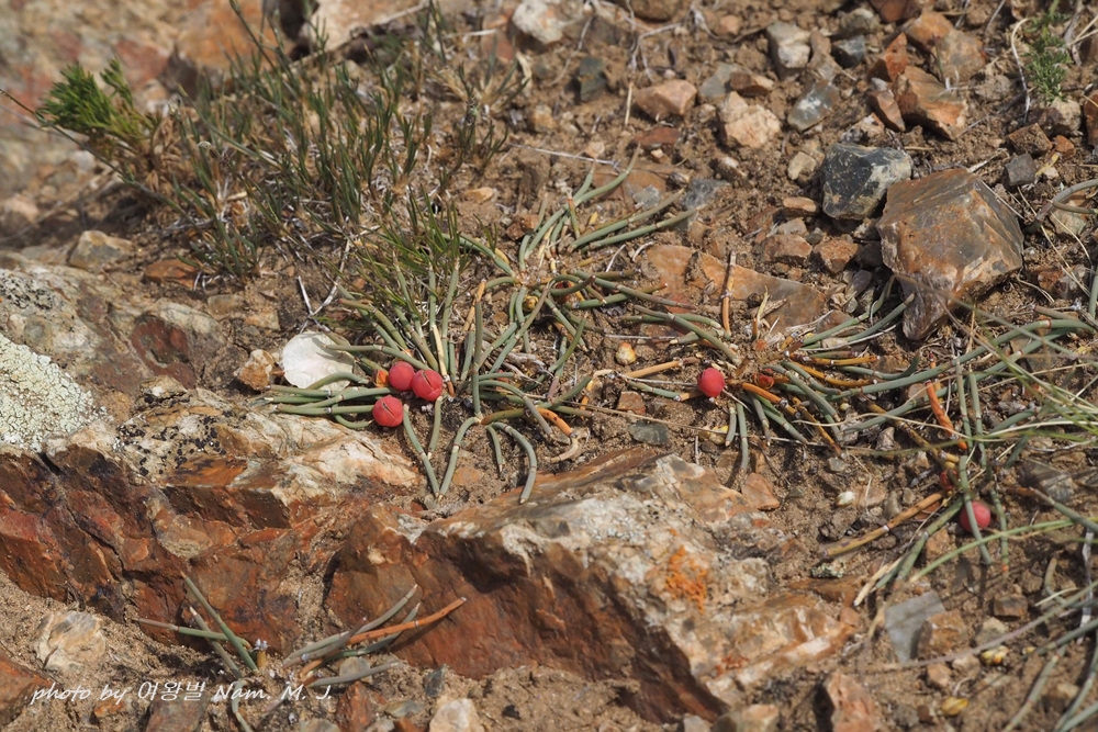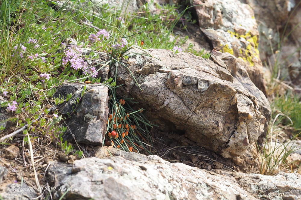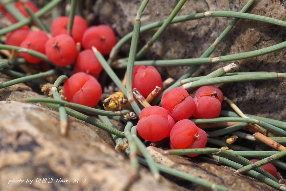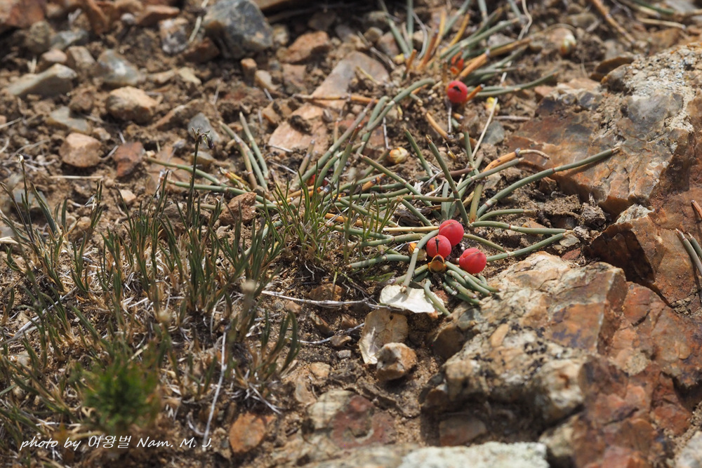 건조한 바위 틈에 속새같은 잎 위에 빨간 열매를 달고 있는 모습이 어찌나 귀엽던지...
