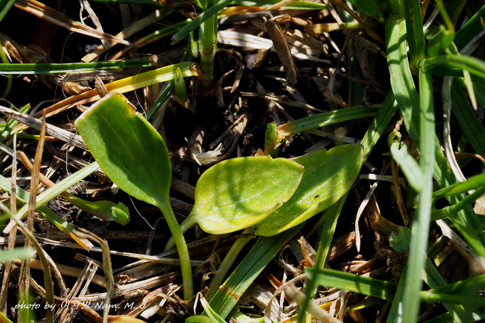 이 녀석은 잎이 작고 동그란 타원형에 잎자루가 길게 발달하고 꽃자루가 길며 꽃의 수가 더 적다.