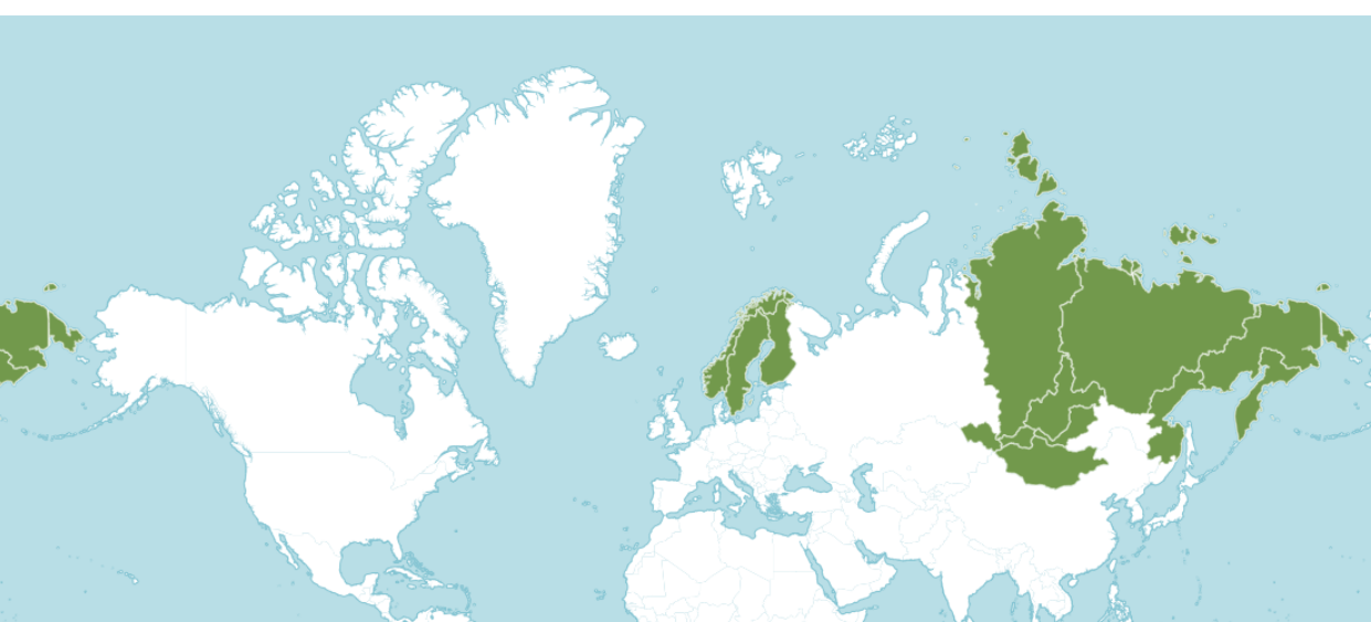 분포 범위가 아북극 유라시아에서 북몽골까지다.