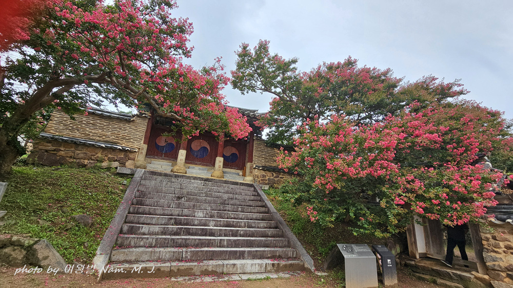 입교당 뒤 사당 앞에는 400년 묵은 배롱나무가 기와집 지붕과 어울려서 멋징 조화를 이루고 있다.